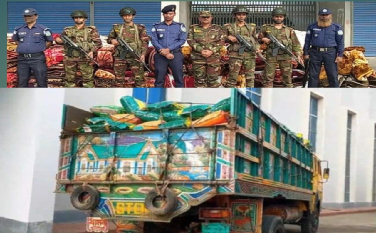 শেরপুরের নালিতাবাড়ী উপজেলার সীমান্তঘেষা কাকরকান্দি গ্রামে ৫ ডিসেম্বর বৃহস্পতিবার রাত ১টা থেকে ভোররাত পর্যন্ত শেরপুর সেনা ক্যাম্পের সেনা সদস্যরা অভিযান চালিয়ে চোরাই পথে আনা ৩০৫ বস্তা ভারতীয় জিরা ও ১৪৫ বস্তায় ৭২১টি কম্বলসহ দুটি ট্রাক আটক করেছে। আটককৃত জিরা, কম্বল ও ট্রাকসহ আনুমানিক বর্তমান বাজার মূল্য ১ কোটি ১৩ লাখ ৭৪ হাজার টাকা। শেরপুর সেনা ক্যাম্প সূত্রে জানা গেছে, এক গোপন সংবাদের ভিত্তিতে শেরপুর সেনা ক্যাম্পের ক্যাপ্টেন নাহিয়ান এর নেতৃত্বে ক্যাপ্টেন রাফিউল, ল্যাফটেন্যান্ট সানজিদ ও সিনিয়র ওয়ারেন্ট অফিসার ফরাস উদ্দিনসহ সেনা সদস্যরা শেরপুর জেলার নালিতাবাড়ী উপজেলার কাকরকান্দি গ্রামে বৃহস্পতিবার গভীর রাত থেকে ভোররাত পর্যন্ত জনৈক রহুল আমীনের বাড়ির পাশে গোয়ালঘরসহ বিভিন্ন স্থানে অভিযান চালায়। এসময় গোয়াল ঘর থেকে ১০০ বস্তা কম্বল ও কলাবাগান থেকে ৪৫ বস্তা কম্বলসহ ৭২১টি ভারতীয় কম্বল উদ্ধার করে এবং উদ্ধারকৃত কম্বলের বাজার মূল্য ২৮ লাখ ৮৪ হাজার টাকা। এছাড়াও ৩০৫ বস্তা ভারতীয় জিরা উদ্ধার করা হয়েছে এবং উদ্ধারকৃত জিরার বাজার মূল্য ৫৪ লাখ ৯০ হাজার টাকা। একটি ট্রাক এর মূল্য ৩০ লাখ টাকা এতে এসব পণ্যের আনুমানিক বাজার মূল্য ১ কোটি ১৩ লাখ ৭৪ হাজার টাকা। এব্যাপারে শেরপুর সেনা ক্যাম্পে সূত্র সত্যতা নিশ্চিত করে জানিয়েছেন, আটক ট্রাকসহ ভারতীয় কম্বল ও জিরা নালিতাবাড়ী থানায় হস্তান্তর করে মামলা দায়েরের প্রস্তুতি চলছে।