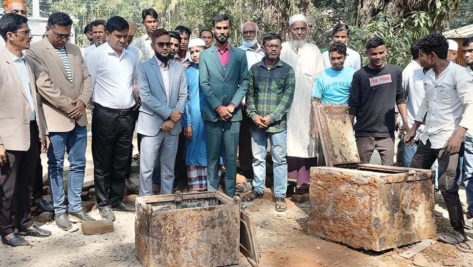 সকাল থেকে ১১ জন শ্রমিক পাকা ভবনের মেঝে ভেঙে দুপুর বিকালে দুটি সিন্দুক উত্তোলন করেন। প্রথম সিন্দুকটির ওজন প্রায় দুই মণ। এটার উচ্চতা ১ ফুট ৩ ইঞ্চি, লম্বা ১ফুট ১১ ইঞ্চি, প্রস্থ ১ ফুট ৩ ইঞ্চি। ভিতরে ৩টি ভাগে বিভক্ত। দ্বিতীয় সিন্দুকটির ওজন ৪-৫ মণ হবে বলে জানান উত্তোলনকারী কর্মীরা।