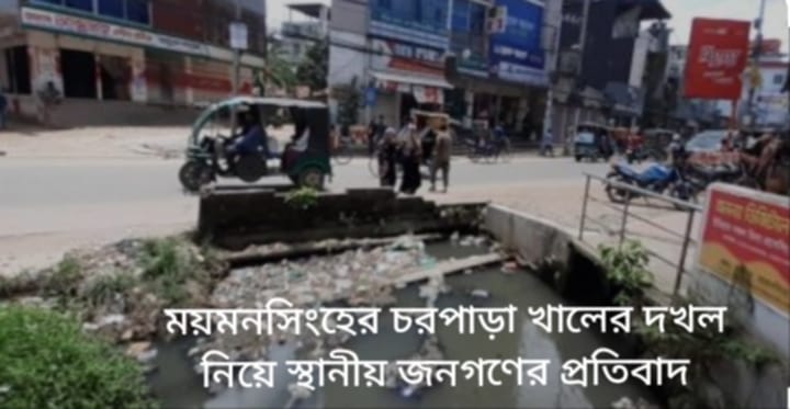 ময়মনসিংহ মহানগরের চরপাড়া মোড়ের খালের অবৈধ দখল নিয়ে এলাকাবাসী উদ্বিগ্ন। দীর্ঘ সতেরো বছর ধরে, একটি পরিচিত গ্রুপ খালের ওপর অবৈধ স্হাপনা গড়ে তোলার মাধ্যমে জনগণের জন্য নানা সমস্যা সৃষ্টি করেছে। এই খালের ওপর নির্মিত স্লিপার ও রাস্তা দিয়ে পথচারীরা চলাচল করতে গিয়ে নানা দুর্ঘটনার সম্মুখীন হচ্ছেন। তবে, স্থানীয় জনগণ কখনোই সরাসরি তাদের ক্ষোভ প্রকাশ করতে পারেননি, কারণ তারা জানতেন এই দখলদাররা অনেক প্রভাবশালী এবং তাদের বিরুদ্ধে কোনো কথা বললে, তা তাদের জন্য বিপদজনক হতে পারে।