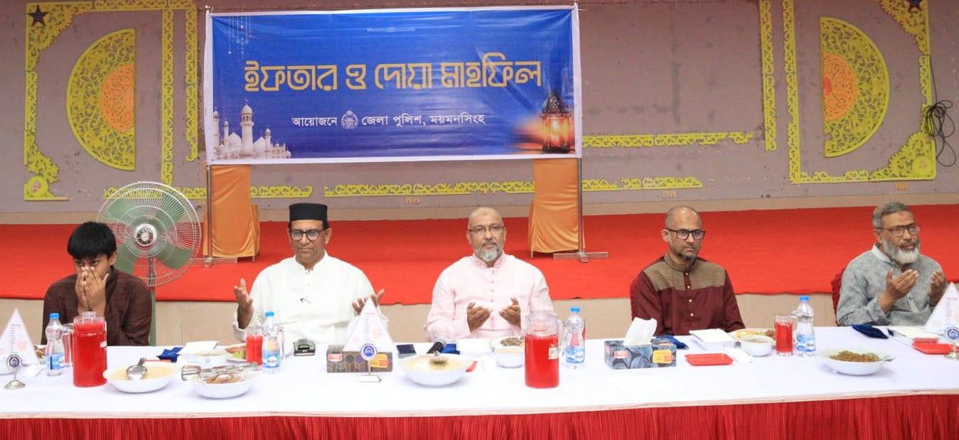 বৃহস্পতিবার (২০ মার্চ, ২০২৫ খ্রি.) পবিত্র মাহে রমজান উপলক্ষে শহীদ বীর মুক্তিযোদ্ধা পুলিশ সুপার মুন্সী কবির উদ্দিন আহমেদ মাল্টিপারপাস শেড (কল্যাণ শেড), পুলিশ লাইনস্, ময়মনসিংহে জেলা পুলিশের উদ্যোগে ইফতার ও দোয়া মাহফিল এর আয়োজন করা হয়। ইফতার মাহফিলে উপস্থিত ছিলেন ময়মনসিংহ রেঞ্জের সম্মানিত ডিআইজি, জনাব ড. মোঃ আশরাফুর রহমান। উক্ত আয়োজনে ইফতারের পূর্বে দেশের সমৃদ্ধি এবং জনগণের মঙ্গল কামনা করে মোনাজাত করা হয়।