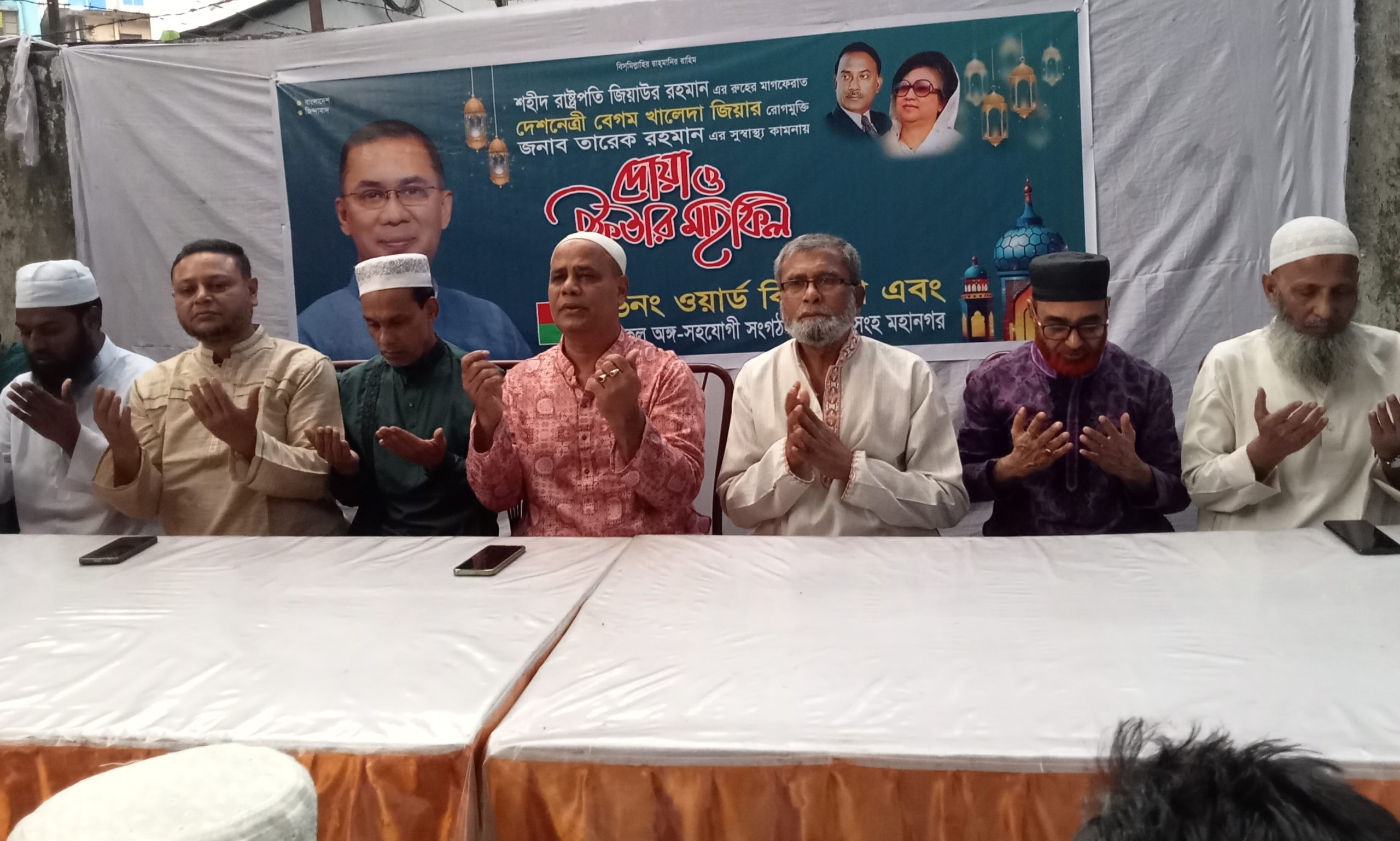 শহীদ রাষ্ট্রপতি জিয়াউর রহমানের মাগফেরাত, দেশনেত্রী বেগম খালেদা জিয়ার রোগমুক্তি ও বিএনপির ভারপ্রাপ্ত চেয়ারম্যান তারেক রহমানের সুস্বাস্থ্য কামনায় ময়মনসিংহ মহানগরীর ৬ং ওয়ার্ডে দোয়া ও ইফতার মাহফিল অনুষ্ঠিত হয়েছে। শনিবার নগরীর চৌরঙ্গীর মোড় পান বিলাস কমিউনিটি সেন্টারে মহানগর যুবদলের যুগ্ন সাধারণ সম্পাদক মোঃ আজিজুল হক মিল্টনের আয়োজনে এই দোয়া অনুষ্ঠিত হয়।
