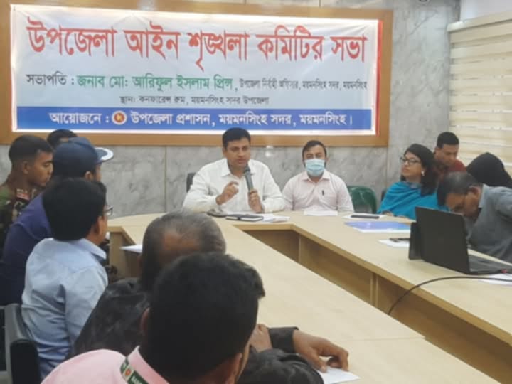 ময়মনসিংহ সদরে আইনশৃঙ্খলা বিষয়ক একটি বিশেষ সভা সোমবার বেলা ২ টার দিকে উপজেলা প্রশাসন সম্মেলন কক্ষে অনুষ্ঠিত হয়েছে। উপজেলা নির্বাহী কর্মকর্তা (ইউএনও) আরিফুল ইসলাম প্রিন্স এর সভাপতিত্বে আয়োজিত সভায় বিভিন্ন দপ্তরের কর্মকর্তাগণ, পুলিশ প্রশাসন ও স্থানীয় নেতৃবৃন্দ উপস্থিত ছিলেন। সভায় প্রবিত্র মাহে রমজান এবং ঈদ-উল-ফিতর কে সামনে রেখে উপজেলার আইনশৃঙ্খলা পরিস্থিতি স্বাভাবিক রাখতে গুরুত্বপূর্ণ আলোচনা অনুষ্ঠিত হয়। বিশেষত ঈদে ঘরমুখো মানুষের নির্বিঘ্নে চলাচল নিশ্চিত করার জন্য মহাসড়ক যানজটমুক্ত রাখতে কার্যকর ব্যবস্থা গ্রহণের বিষয়ে সিদ্ধান্ত গ্রহণ করা হয়। এছাড়া, মাদক, জুয়া ও অন্যান্য অপরাধ নিয়ন্ত্রণে কঠোর পদক্ষেপ গ্রহণের বিষয়েও আলোচনা হয়। উপজেলা প্রশাসনের পক্ষ থেকে সভায় বিভিন্ন ধরনের আইনশৃঙ্খলা রক্ষাকারী ব্যবস্থা গ্রহণের পাশাপাশি জনসচেতনতা বৃদ্ধির জন্য প্রচার-প্রসারমূলক কার্যক্রম চালানোর সিদ্ধান্তও নেয়া হয়। সকল দপ্তর এবং স্থানীয় জনগণকে একযোগে কাজ করার আহ্বান জানানো হয়, যাতে ঈদ উৎসবটি শান্তিপূর্ণ ও নিরাপদভাবে উদযাপন করা যায়। সভায় উপস্থিত কর্মকর্তাগণ এ ধরনের উদ্যোগের প্রশংসা করে বলেন, আইনশৃঙ্খলা বজায় রাখার জন্য জনগণের সহযোগিতা অত্যন্ত গুরুত্বপূর্ণ।