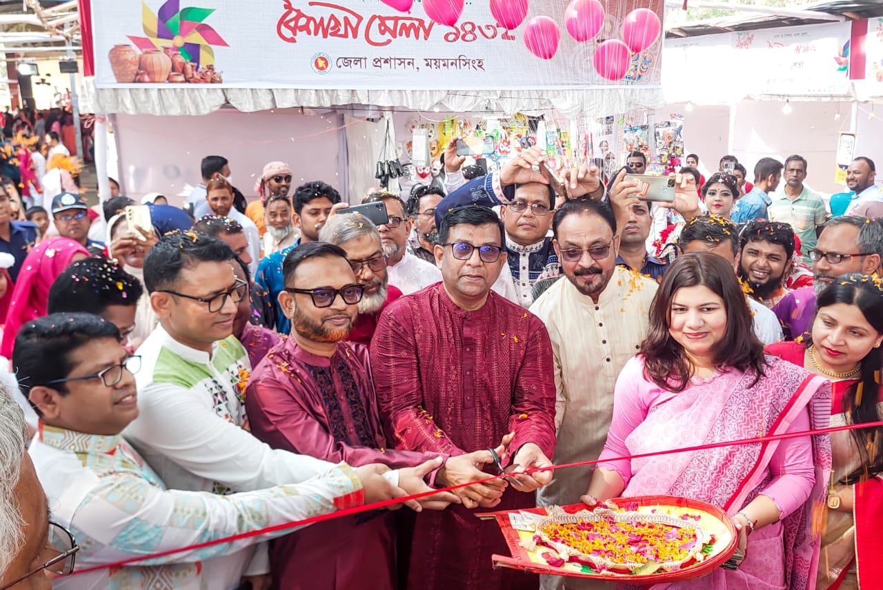 অনুষ্ঠানের শুরুতে জেলা প্রশাসনের আয়োজনে ফিতা কেটে ও বেলুন উড়িয়ে বৈশাখী মেলা ১৪৩২ এর শুভ উদ্বোধন করেন ময়মনসিংহ বিভাগীয় কমিশনার।