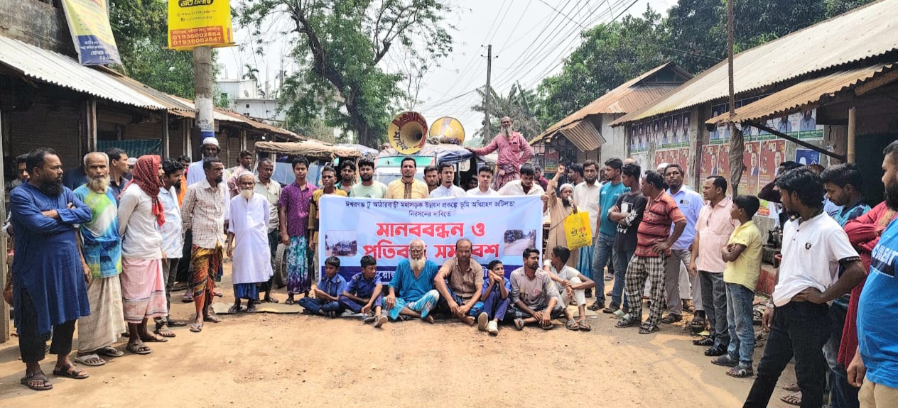ময়মনসিংহের ঈশ্বরগঞ্জে সড়ক উন্নয়ন প্রকল্পে ভূমি অধিগ্রহণ জটিলতা নিরসনের দাবীতে মানববন্ধন ও প্রতিবাদ সমাবেশ করেছে স্থানীয় বাসিন্দারা। বুধবার (১৬ এপ্রিল) বেলা ১১টায় এ মানববন্ধন ও প্রতিবাদ সমাবেশ করা হয়।