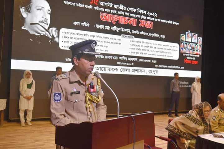 এরপর রংপুর জেলা স্কুল হতে শোক র্যালি শুরু হয়ে, টাউনহল রংপুরে সমাপ্ত হয়। সেখানে জেলা শিল্পকলা একাডেমি অডিটোরিয়ামে, জেলা প্রশাসশ, রংপুরের আয়োজনে। জনাব আসিব আহসান, জেলা প্রশাষক, রংপুর মহোদয়ের সভাপতিত্তে বঙ্গবন্ধুর ৪৭তম শাহাদাত বার্ষিকী উপলক্ষ্যে আলোচনা সভায় বিশেষ অতিথি হিসেবে বক্তব্য রাখেন জনাব মোঃ ফেরদৌস আলী চৌধুরী, পুলিশ সুপার রংপুর।