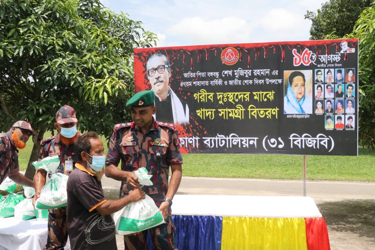 জাতির পিতা বঙ্গবন্ধু শেখ মুজিবুর রহমান এর ৪৭তম শাহাদাৎ বার্ষিকী এবং জাতীয় শোক দিবস-১৫ই আগষ্ট ২০২২ উপলক্ষ্যে ত্রাণ ও খাদ্য সামগ্রী বিতরণ করেন ৩১ বিজিবি নেত্রকোনা।