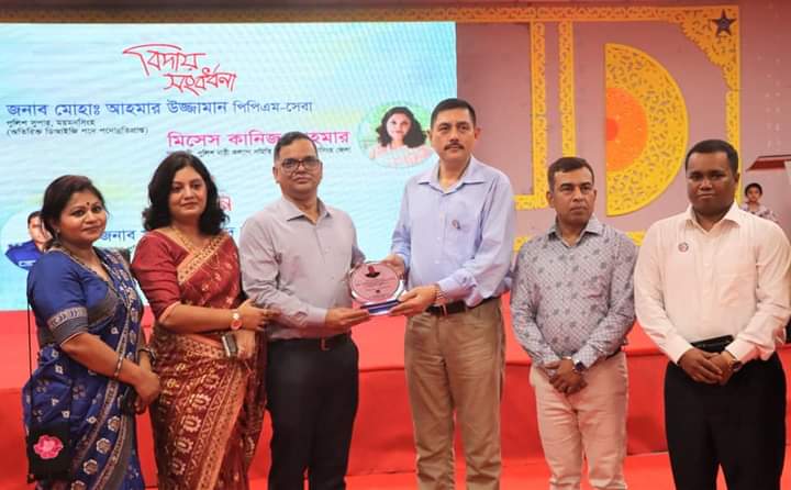 আজ জেলা পুলিশ, ময়মনসিংহের পক্ষ হতে মোহাঃ আহমার উজ্জামান পিপিএম-সেবা, পুলিশ সুপার, ময়মনসিংহ (অতিরিক্ত ডিআইজি পদে পদোন্নতিপ্রাপ্ত) এবং মিসেস কানিজ আহমার, সভানেত্রী, পুলিশ নারী কল্যাণ সমিতি (পুনাক), ময়মনসিংহ জেলা মহোদয়কে বদলিজনিত বিদায় সংবর্ধনা জানানো হয়। একই সঙ্গে বরণ করে নেওয়া হয় ময়মনসিংহ জেলার নবাগত পুলিশ সুপার মাছুম আহাম্মদ, পিপিএম-সেবা মহোদয়কে।