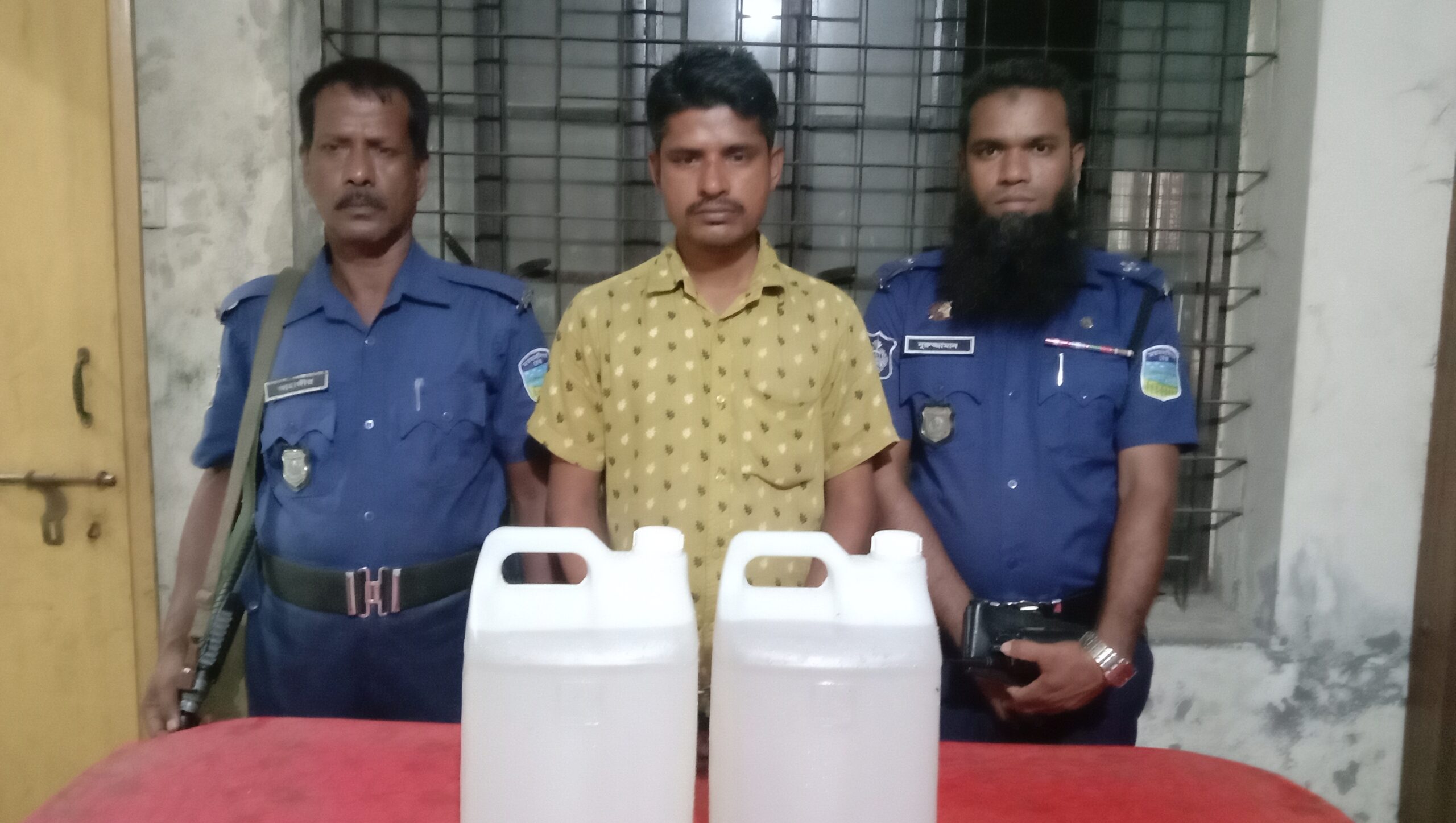 ময়মনসিংহ শহরর ১ নং পুলিশ ফাড়ির ইনচার্জ আনোয়ার হোসেনের নেনৃত্বে অভিযান চালিয়ে মোঃ মাসুদ (৪১)কে ধৃত আসামীর হেফাজত হইতে উদ্ধারকৃত আলামত ২০ (বিশ) লিটার দেশীয় মদ আজ সন্ধায় নগরীর গাঙ্ঘীনা পাড় এলাকা হতে উদ্ধার করেন ।