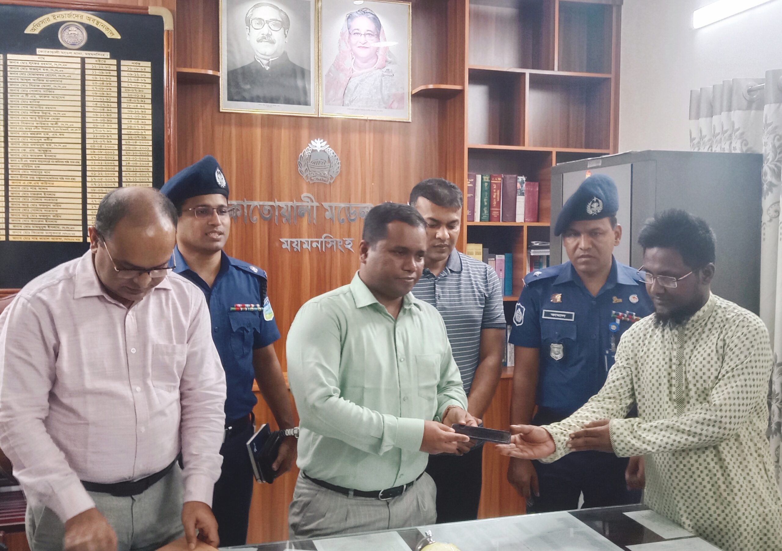 বিভাগীয় নগরী ময়মনসিংহে মোবাইল ফোন হারিয়ে প্রতিদিন কোতোয়ালী মডেল থানা ও জেলা পুলিশের দ্বারস্থ হচ্ছে অসংখ্য মানুষ। এছাড়াও পুলিশ সুপারসহ জেলা পুলিশের উর্দ্বতন কর্মকর্তাগন হারানো মোবাইল উদ্ধারে কোতোয়ালী মডেল থানার ওসি শাহ কামাল আকন্দকে তাৎক্ষণিক ফোন করেন। মোবাইল হারানোর ঘটনায় ক্ষতিগ্রস্থ জনগনের আবেদন সহ উর্দ্বতন কর্মকর্তাদের সকল নির্দেশনাকে ওসি শাহ কামাল আকন্দ গুরুত্ব সহকারে নিয়ে কোন কাল বিলম্ব না করে থানায় কর্মরত এএসআই আমির হামজাকে মোবাইল উদ্ধারে নির্দেশ দেন। এএসআই আমির হামজা সকল নির্দেশনাকে গুরুত্ব দিয়ে তাৎক্ষণিক তথ্য প্রযুক্তি মাঠে নামেন। এভাবে গত এক বছর কয়েকদিনের মধ্যে পাচ শত ২৯টি মোবাইল উদ্ধার করে ক্ষতিগ্রস্থদের হাতে তুলে দিয়েছেন। শনিবার কোতোয়ালী পুলিশের আইন শৃংখলা নিয়ন্ত্রণ বিষয়ক এক মতবিনিময় সভাশেষে উদ্ধারকৃত ২৫ টি মোবাইল মালিকদের হাতে তুলে দেন নবাগত পুলিশ সুপার মাছুম আহাম্মদ ভুঞা।