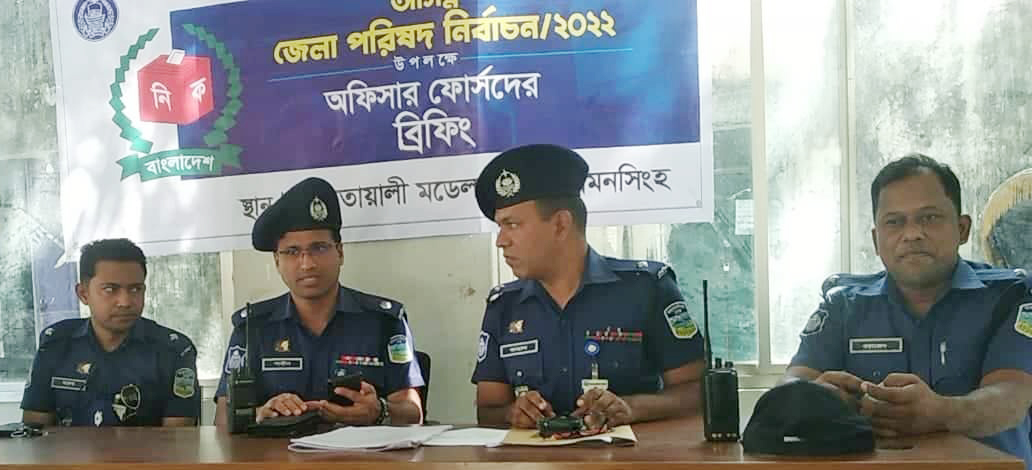 স্টাফ রিপোর্টার, ময়মনসিংহ ॥ আজ সোমবার ১৭ অক্টোবর। ময়মনসিংহ সহ সারাদেশে জেলা পরিষদের নির্বাচন। এই নির্বাচনকে শান্তিপুর্ণ, অবাধ, নিরপেক্ষ এবং ভোটার, প্রার্থী ও সমর্থকদের সার্বিক নিরাপত্তায় ময়মনসিংহের কোতোয়ালী পুলিশ কঠোর অবস্থানে রয়েছে। ভোট কেন্দ্রে ভোট গ্রহণ, ভোটার, সমর্থক ও প্রার্থীদের চলাফেরায় নিরাপত্তা নিশ্চিত এবং ভোট কেন্দ্রে শতভাগ নিরপেক্ষ অবস্থান নিশ্চিত করতে ডিউটিরত পুলিশ ও আইন শৃংখলা বাহিনীর প্রতি কঠোর নির্দেশ দেন কোতোয়ালী মডেল থানার ওসি শাহ কামাল আকন্দ। কোতোয়ালী পুলিশের উদ্যোগে ডিউটিরত পুলিশ ও আইন শৃংখলা বাহিনীর সদস্যদের দায়িত্ব কর্তব্য সম্পর্কে ব্রিফিং প্রদান করা হয়। কোতোয়ালী মডেল থানার ওসি শাহ কামাল আকন্দের সভাপতিত্বে অনুষ্ঠানে প্রধান অতিথি ছিলেন সদর সার্কেলের অতিরিক্ত পুলিশ সুপার শাহীনুল ইসলাম ফকির। এছাড়া অনুষ্ঠানে পুলিশ পরিদর্শক তদন্ত ফারুক হোসেন, পুলিশ পরিদর্শক (ইন্টেলিজেন্ট) ওয়াজেদ আলীসহ অন্যান্য পুলিশ কর্মকর্তা, পুলিশ সদস্য।