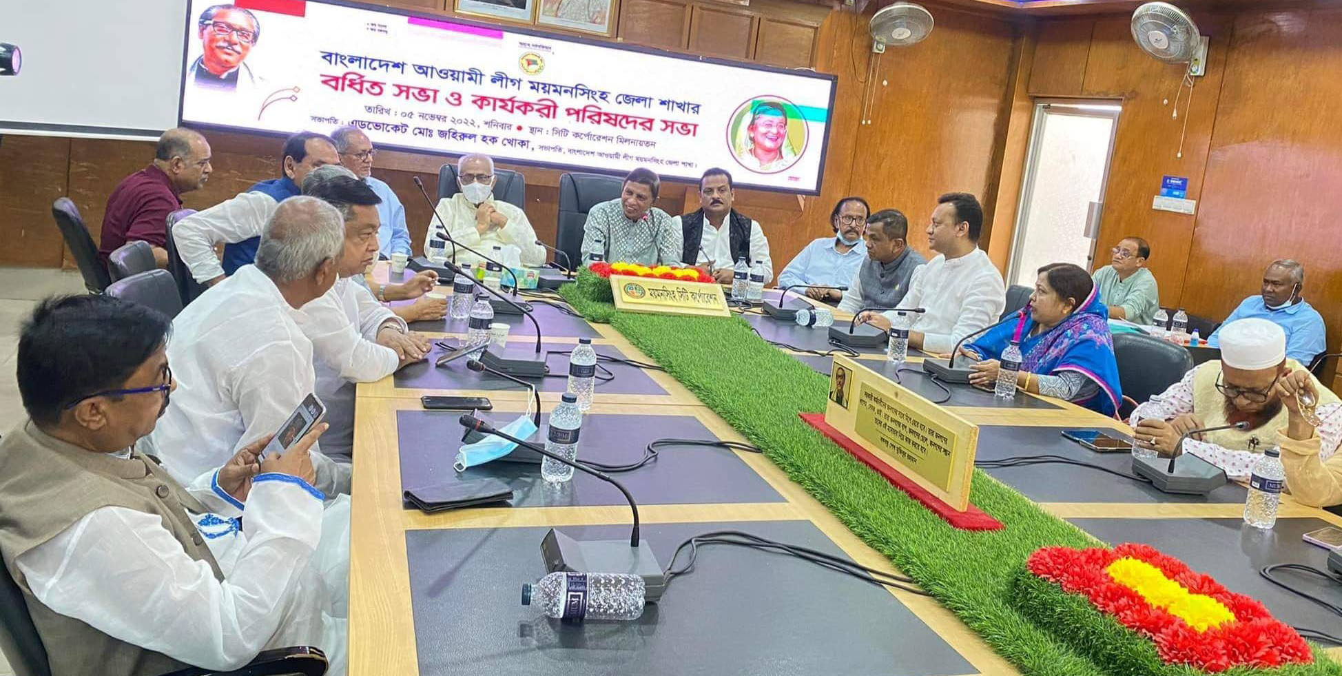 স্টাফ রিপোর্টার, ময়মনসিংহ ॥ ময়মনসিংহ জেলা আওয়ামী লীগের বর্ধিত সভা ও কার্যকরী কমিটির সভা শনিবার অনুষ্ঠিত হয়েছে। ময়মনসিংহ সিটি কর্পোরেশনের শহীদ শাহাবুদ্দিন মিলনায়তনে এই সভা হয়। জেলা আওয়ামী লীগের সভাপতি এডভোকেট জহিরুল হক খোকার সভাপতিত্বে সাধারণ সম্পাদক এডভোকেট মোয়াজ্জেম হোসেন বাবুলের পরিচালনায় বর্ধিত সভায় গৃহায়ন ও গণপুর্ত প্রতিমন্ত্রী শরীফ আহমেদ এমপি, এডভোকেট মোসলেম উদ্দিন এমপি, ফাহমী গোলন্দাজ বাবেল এমপি, আনোয়ারুল আবেদীন খান তুহিন এমপি, কাজিম উদ্দিন আহমেদ ধনু এমপি, মনিরা সুলতানা মনি এমপি, জেলা আওয়ামী লীগের সম্মানিত সহসভাপতি এডভোকেট কবির উদ্দিন ভুঁইয়া, এডভোকেট ফরিদ আহমেদ, ফারুক আহমেদ খান, মোমতাজ উদ্দিন মন্তা, আমিনুল হক শামীম সিআইপি, এডভোকেট সাদেক খান মিল্কী টজু, এডভোকেট পীযুষ কান্তি সরকার, অধ্যাপক ইউসুফ খান পাঠান, যুগ্ম সাধারণ সম্পাদক এম এ কুদ্দুস, শওকত জাহান মুকুল, সাংগঠনিক সম্পাদক আহাম্মদ আলী আকন্দ, শরীফ হাসান অনু, দপ্তর সম্পাদক অধ্যক্ষ আবু সাইদ দীন ইসলাম ফখরুল, প্রচার সম্পাদক আহসান মোহাম্মদ আজাদ, কৃষি গবেষণা সম্পাদক অধ্যাপক এ কে এম আব্দুর রফিক, ধর্ম বিষয়ক সম্পাদক এডভোকেট আব্দুল গফুর, মিরন চৌধুরী, আবুল কালাম রাসেল ভিপি রাসেল, এডভোকেট আইনুল হক, এডভোকেট আবু বকর সিদ্দিক, অধ্যক্ষ আতিকুর রহমান, মোস্তাফিজ বাশার ভাষানী, তাসলিমা বেগম, মিজানুর রহমান ডেবিট, শামসুল আলম, সদস্য এমদাদুল হক মন্ডল, এডভোকেট ইমদাদুল হক সেলিম, এডভোকেট জিয়াউল হক সবুজ, নিলুফার আনজুম পপি, নাজনীন আলম সহ নেতৃবৃন্দ উপস্থিত ছিলেন। বিকালে কার্যকরী পরিষদের সভা অনুষ্ঠিত হয়।
