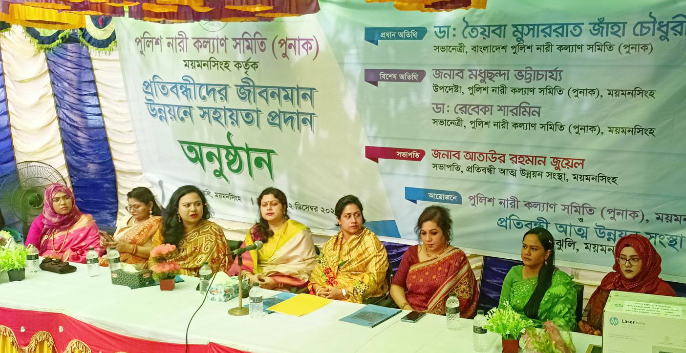 প্রতিবন্ধি আত্œ উন্নয়ন সংস্থার সভাপতি আতাউর রহমান জুয়েলের সভাপতিত্বে অনুষ্ঠানে বিশেষ অতিথি হিসেবে অতিরিক্ত আইজিপি (এইচআরএম) পুলিশ হেড কোয়ার্টার ব্যারিস্টার হারুন অর রশিদ পতœী ফাতেহা পারভীন লুনা, ময়মনসিংহ পুনাকের উপদেষ্টা মধুছন্দা ভট্টাচার্য্য, ময়মনসিংহ পুনাক সভানেত্রী ডাঃ রেবেকা শারমিন, ময়মনসিংহ প্রেসক্লাবের সাধারণ সম্পাদক বাবুল হোসেন, প্রতিবন্ধি আত্œ উন্নয়ন সংস্থার সভাপতি আতাউর রহমান জুয়েল বক্তব্য রাখেন। এ কোতায়ালী মডেল থানার ওসি শাহ কামাল আকন্দসহ পুলিশের অন্যান্য কর্মকর্তাগণ উপস্থিত ছিলেন। পরে পুনাকের পক্ষ থেকে প্রতিবন্ধিদের মাঝে উন্নয়ন সহায়তা ও শীতবস্ত্র বিতরণ করা হয়।