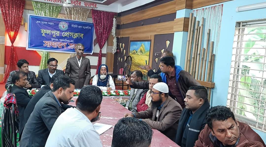 মফস্বল সাংবাদিকদের স্বতঃস্ফূর্ত অংশগ্রহণে ময়মনসিংহের ফুলপুর প্রেসক্লাবের সাধারণ সভা অনুষ্ঠিত হয়েছে। ২০ জানুয়ারি শুক্রবার বিকেলে উপজেলার পালকি কমিউনিটি সেন্টারে সভাটি অনুষ্ঠিত হয়। ফুলপুর প্রেসক্লাব সভাপতি সাপ্তাহিক ফুলতারা পত্রিকার সম্পাদক ও প্রকাশক (যুগান্তর প্রতিনিধি) নাজিম উদ্দিনের সভাপতিত্বে ও সাধারণ সম্পাদক (ভোরের ডাক প্রতিনিধি) বিল্লাল হোসাইনের সঞ্চালনায় সভায় উপস্থিত ছিলেন, প্রেসক্লাব সহ- সভাপতি ক্বারী সুলতান আহম্মদ (দৈনিক জাহান), যুগ্ম সাধারণ সম্পাদক আতিকুর রহমান আতিক (স্বদেশ সংবাদ), সাংস্কৃতিক বিষয়ক সম্পাদক আব্দুল মোতালেব, মিজানুর রহমান আকন্দ (আমার সংবাদ), নজরুল ইসলাম ফকির (দেশের খবর), আজাহারুল ইসলাম (দেশেরপত্র), মোখছেদুল হক দুলাল (আলোকিত বাংলাদেশ), আবু রায়হান (ভোরের কাগজ), এম এ মোতালেব (আমাদের অর্থনীতি), গোলাম মোস্তফা (কালবেলা), সেলিম রানা (প্রতিদিনের সংবাদ), বাহার উদ্দিন (সময় সংবাদ), মফিদুল ইসলাম (মুক্ত খবর), আব্দুর রহমান রনি (সাপ্তাহিক ফুলতারা), মাজহারুল ইসলাম (ব্রহ্মপুত্র এক্সপ্রেস), মিজানুর রহমান সুজন (সিএন নিউজ-২৪), উজ্জল চৌধুরী (সুবর্ণ বাংলা), নূর হোসেন খান (শীর্ষ খবর), জুয়েল রানা (দৈনিক মুক্তালোক), শাফায়েত উল্লাহ শান্ত (সাপ্তাহিক ফুলতারা) প্রমুখ। উক্ত সভায় উপস্থিত সাংবাদিকদের সর্বসম্মতিক্রমে প্রস্তাবিত নতুন কমিটির একটি খসড়া তালিকা অনুমোদনসহ প্রেসক্লাবের সার্বিক উন্নয়নার্থে একাধিক সিদ্ধান্ত গৃহীত হয়।