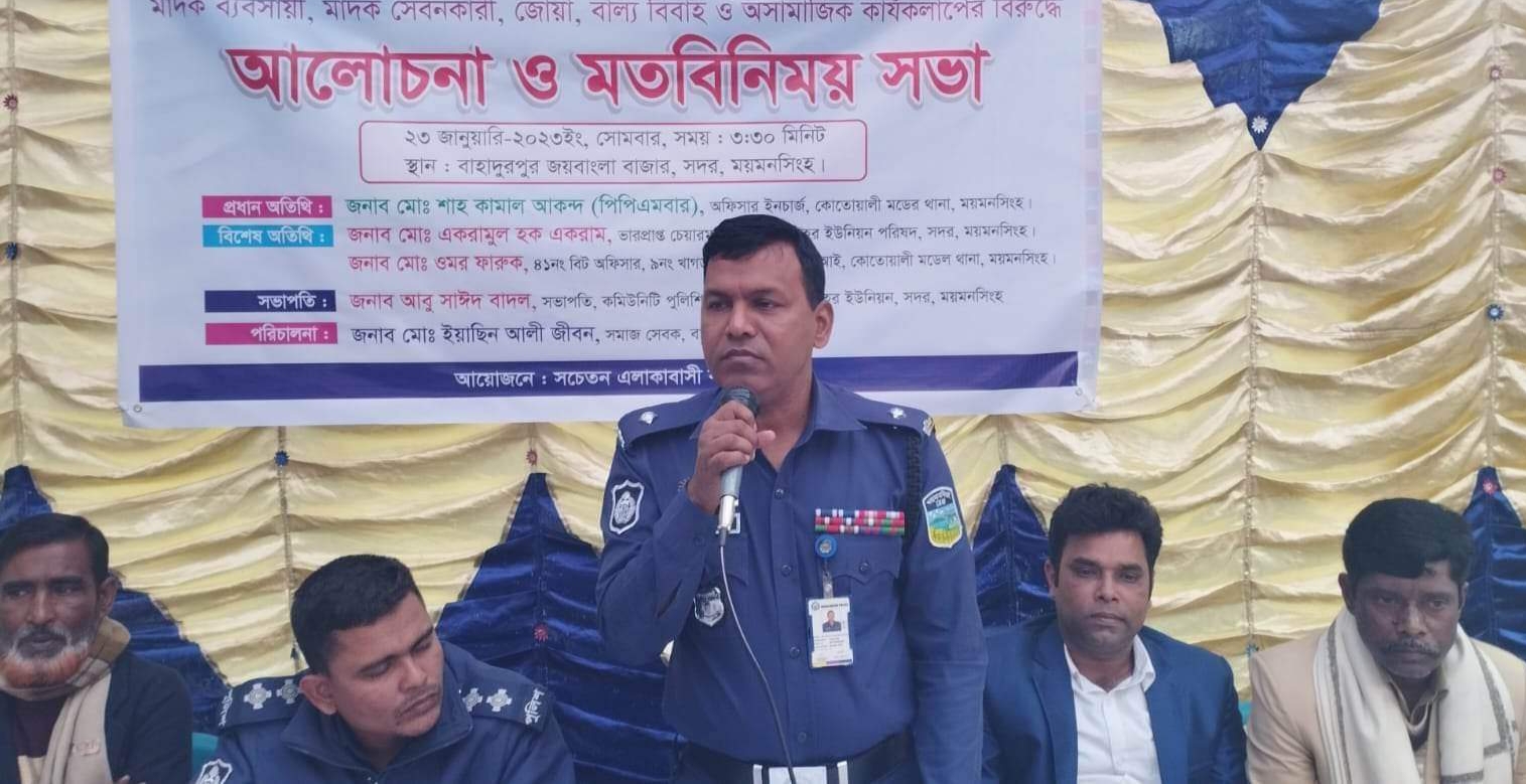 সোমবার খাগডহর ইউনিয়নের জয় বাংলা বাজারে বিট পুলিশিংয়ের সভায় ওসি শাহ কামাল আকন্দ এ সব কথা বলেন। ওসি আরো বলেন, বিট পুলিশিং হলো, মানুষের দোরগোড়ায় পুলিশী সেবা পৌছে দেয়া। বিট পুলিশিং চলমান থাকলে আপনাদেরকে থানায় যেতে হবেনা। থানার মাধ্যমে এই বিটে দায়িত্বরত পুলিশ কর্মকর্তা আপনাদের কাছে এসে আপনাদের সমস্যা শুনে স্থানীয় গণ্যমান্যদের সহায়তায় তাৎক্ষণিক সমাধান করে দিবে। এছাড়া সমাধানযোগ্য না হলে আইনী ব্যবস্থা নিবেন। এতে জন সাধারণের সময়, অর্থ সাশ্রয়ের পাশাপাশি মারামারি, হানাহানি কমে আসবে। একইসাথে পুলিশ ও আদালতে দোড়ঝাপ হয়রানি কমবে। এ জন্য আপনারা বিট পুলিশিংকে সহায়তা করুন। একইসাথে অপরাধীদের তথ্য দিন, আপনাদের নাম পরিচয় গোপন রাখা হবে। তাহলেই এলাকায় চুরি ছিনতাই ডাকাতি ও মাদক ব্যবসা বন্ধ হবে।