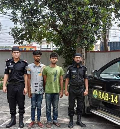 গত ০৬ এপ্রিল ২০২৩ খ্রিঃ তারিখ রাত ০৩.৩০ ঘটিকায় র্যাব-১৪, সিপিসি-২, ভৈরব ক্যাম্প, কিশোরগঞ্জ এর একটি আভিযানিক দল কিশোরগঞ্জ জেলার ভৈরব থানাধীন নাটালের মোড় এলাকায় বিশেষ অভিযান পরিচালনা করে আসামী ১। রকিবুল হাসান @রাকিব(২০), পিতা-আবুল হোসেন, সাং-মঈনপুর, থানা-কসবা, জেলা-ব্রাহ্মনবাড়িয়া, ২। মোঃ পারভেজ(১৮), পিতা-মোঃ আলাউদ্দিন, সাং-কালতা কোরাইশা, থানা-কসবা, জেলা-ব্রাহ্মনবাড়িয়াদ্বয়কে আটক করে। এসময় ধৃত আসামীদের দখলে থাকা একটি ট্রাক তাল্লাশী করে খাকি কস্টেপ দ্বারা মোড়ানো ৩০ টি বান্ডিলে মোট ৬১ (একষট্টি) কেজি মাদকদ্রব্য গাঁজা উদ্ধার করে জব্দ করা হয়। ধৃত আসামীদ্বয় দীর্ঘদিন যাবৎ ব্রাহ্মণবাড়িয়া জেলার সীমান্তবর্তী এলাকা হতে চোরা চালানের মাধ্যমে গাঁজা দেশের অভ্যন্তরে বিভিন্ন স্থানে বিভিন্ন ব্যক্তির কাছে বিক্রয় করে মর্মে স্বীকার করে।