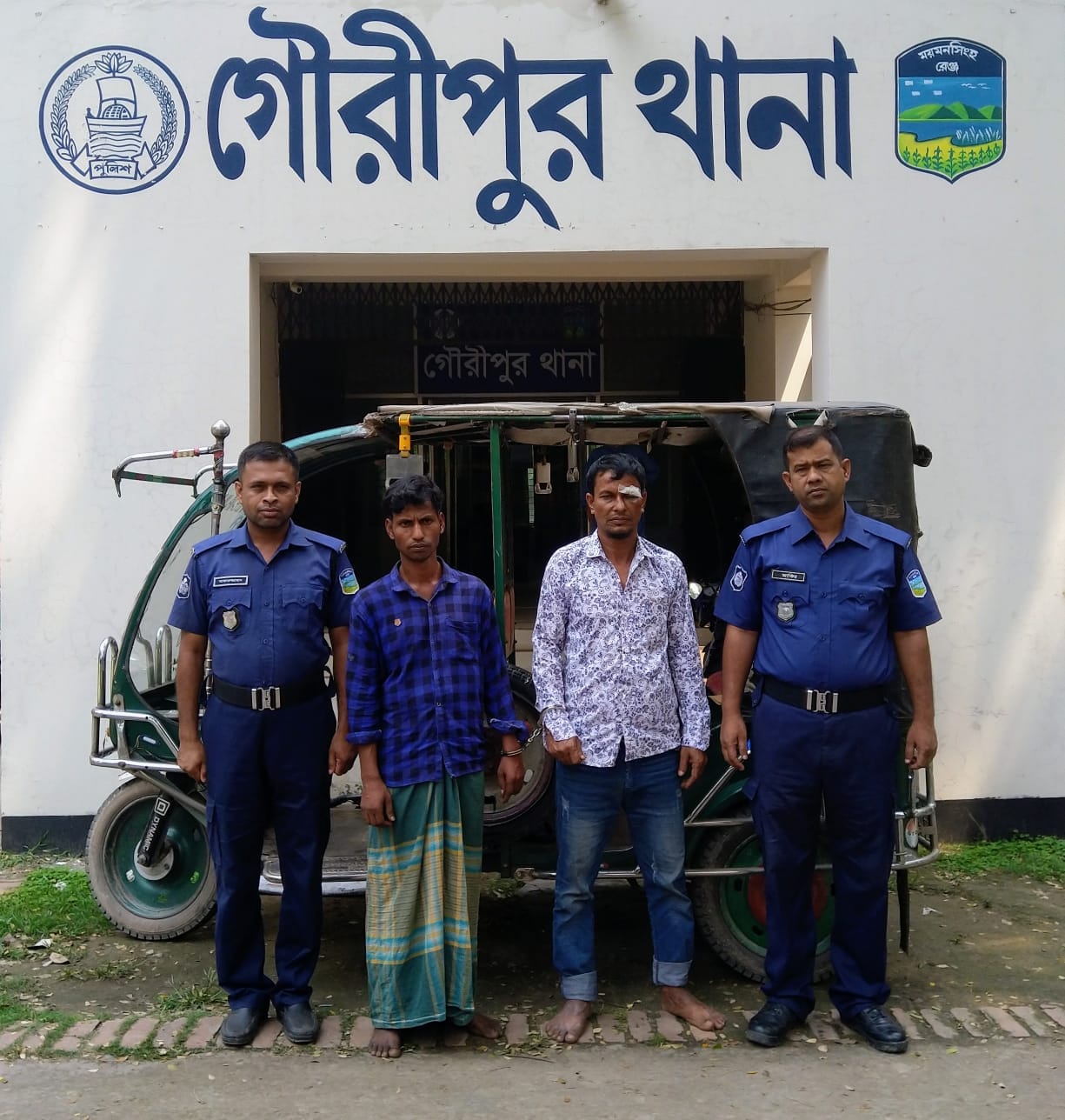গতকাল ৫ মে ২০২৩ তারিখ বিকাল অনুমান ১৭.০০ ঘটিকায় কথিত যাত্রীর ছদ্মবেশে ১। আশরাফুল (২৬), পিতা- মৃত আব্দুল কদ্দুছ, ঠিকানা- কুতুবপুর, থানা-নান্দাইল, জেলা-ময়মনসিংহ ও ২। মোঃ আঃ জলিল (৪৪), পিতা-মৃত নিরু ঢুলী, সাং-নওয়াপাড়া (ঢুলী পাড়া), থানা-কেন্দুয়া, জেলা-নেত্রকোনা-দ্বয় জেলার ঈশ্বরগঞ্জ থানাধীন আঠারোবাড়ি এলাকা থেকে কোতয়ালি থানাধীন শম্ভুগঞ্জ এলাকায় মাছের রেণু পোনা কিনতে যাবে বলে একটি অটো গাড়ি রিজার্ভ করে। এরপর অটোগাড়ির ড্রাইভার ভিকটিম খায়রুল বাশার চঞ্চল (১৯), পিতা-মোঃ খোকন মিয়া, সাং-কাকনহাটি, থানা-ঈশ্বরগঞ্জ, জেলা-ময়মনসিংহ কে গন্তব্যে না নিয়ে বিভিন্ন জায়গায় যত্রতত্র ঘুরিয়ে সময়ক্ষেপন সময়ক্ষেপন করতে থাকে। পথিমধ্যে অটো চালককে অজ্ঞাত একটি স্থানে আখের রসের সাথে চেতনানাশক মিশিয়ে পান করায় এবং তাকে অজ্ঞান করার পর ময়মনসিংহ জেলার গৌরীপুর থানাধীন কলতাপাড়া নামক স্থানে পাকা রাস্তার পাশে তাকে অজ্ঞান অবস্থায় ফেলে রেখে অটোগাড়ী চুরি করে পালিয়ে যেতে উদ্যত হয়। ঠিক এই সময় টহলরত গৌরীপুর থানা পুলিশ রামগোপালপুর বাসস্ট্যান্ড এলাকায় তাদেরকে সন্দেহভাজন হিসেবে চিহ্নিত করে এবং রাত অনুমান ১০.২৫ ঘটিকায় ধাওয়া করে আসামীদ্বয়কে উক্ত অটোগাড়িসহ হাতেনাতে আটক করে। পরবর্তীতে তাদের ভাষ্যমতে অজ্ঞান অটো চালককে কলতাপাড়া হতে উদ্ধার করে হাসপাতালে চিকিৎসার জন্য প্রেরণ করা হয়। আসামীদের বিরুদ্ধে গৌরীপুর থানায় মামলা প্রক্রিয়াধীন রয়েছে।