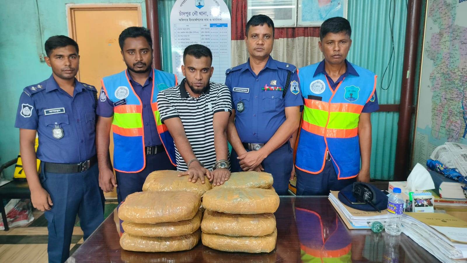 জানা যায়, চাঁদপুর নৌ থানার এসআই (নিরস্ত্র) সুমন দে সঙ্গীয় ফোর্সসহ চাঁদপুর লঞ্চঘাটে অভিযান পরিচালনা করেন। অভিযানে মো. বাদশা নামে এক মাদক ব্যবসায়ীর থেকে ১২ কেজি গাঁজা উদ্ধার করা হয়।