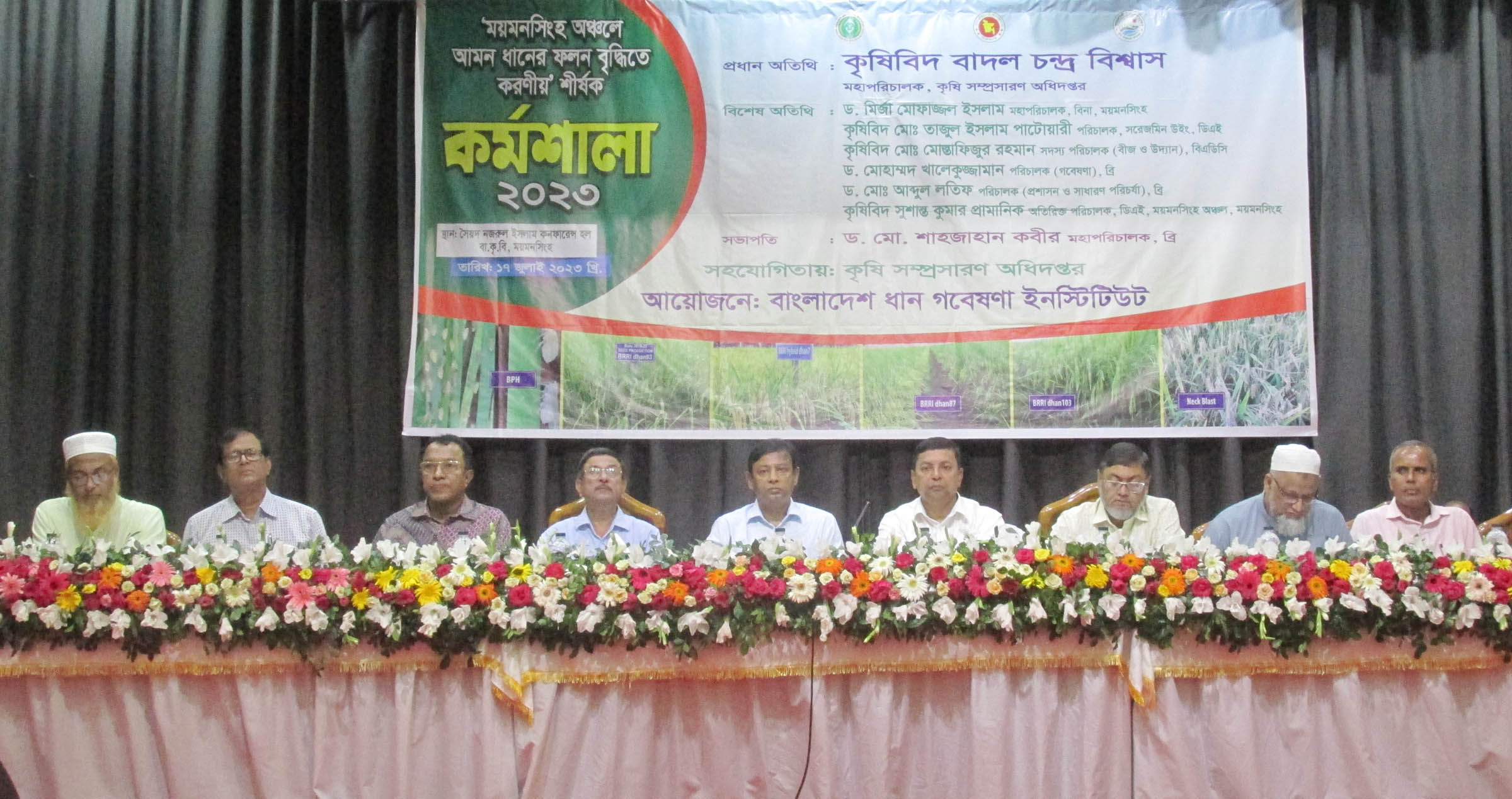 বাংলাদেশ ধান গবেষনা ইনস্টিটিউটের আয়োজনে সোমবার বাংলাদেশ কৃষি বিশ্ববিদ্যালয়ের সৈয়দ নজরুল ইসলাম কনফারেন্স হলে আমন ধানের ফলন বৃদ্ধিতে করণীয় শীর্ষক আঞ্চলিক কর্মশালায় বক্তারা এসব কথা বলেন। বাংলাদেশ ধান গবেষনা ইনস্টিটিউটের (ব্রি) মহাপরিচালক ডঃ শাহজাহান কবীরের সভাপতিত্বে কর্মশালায় বাংলাদেশ পরমাণু গবেষনা ইনস্টিটিউটের (বিনা) মহাপরিচালক আর্ন্তজাতিক ধান বিজ্ঞানী কৃষিবিদ ডঃ মির্জা মোফাজ্জল ইসলাম অপু, কৃষি সম্প্রসারন অধিদপ্তরের সরেজমিন উইংয়ের পরিচালক কৃষিবিদ তাজুল ইসলাম পাটোয়ারী, বিএডিসির সদস্য (বীজ ওউদ্যান) কৃষিবিদ মোস্তাফিজুর রহমান, বাংলাদেশ ধান গবেষনা ইনস্টিটিউটের (ব্রি) পরিচালক (গবেষনা) ডঃ মোহাম্মদ খালেকুজ্জামান, বাংলাদেশ ধান গবেষনা ইনস্টিটিউটের (ব্রি) পরিচালক (প্রশাসন ও সাধারন পরিচর্যা) ডঃ মোঃ আব্দুল লতিফ, কৃষি সম্প্রসারন অধিদপ্তরের ময়মনসিংহ অঞ্চলের অতিরিক্ত পরিচালক কৃষিবিদ সুশান্ত কুমার প্রামানিক বিশেষ অতিথি হিসেবে বক্তব্য রাখেন। দিন ব্যাপী আঞ্চলিক কর্মশালায় বাংলাদেশ ধান গবেষনা ইনস্টিটিউটের বিজ্ঞানী ডঃ ইব্রাহীম মূল প্রবন্ধ উপস্থাপন করেন ।