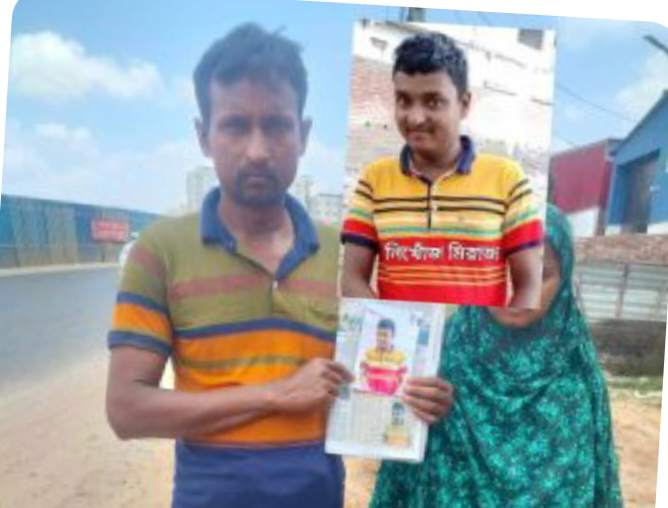 মোল্লা তানিয়া ইসলাম তমাঃ মিরাজ (১৯) (বুদ্ধি প্রতিবন্ধী) গত ৬ জুলাই ২০২৩ইং তারিখ রাতে রাজধানীর তুরাগ থানার ধউর এলাকা থেকে নিখোঁজ হন । আর এই প্রতিবন্ধী মিরাজ নিখোঁজ হওয়ার পর থেকেই তাকে খুঁজে পেতে দেশের বিভিন্ন জেলায় হন্যে হয়ে ঘুরতেছেন তার বাবা দিনমজুর কালাম শেখ ও মা মিনা । ২২শে জুলাই সকাল ১১টার দিকে এই দম্পতিকে কান্নাকাটি করতে দেখা যায়, আব্দুল্লাহ পুর- নবীনগর সড়কের বেড়িবাঁধ এলাকায় । আর সেখানেই তাদের সাথে কথা হয় প্রতিবেদকের । তারা জানান, গত ৬ জুলাই ২০২৩ইং তারিখ রাতে ধউর এলাকায় তাদের ভাড়া বাসা থেকে নিখোঁজ হয় প্রতিবন্ধী মিরাজ । তার পর থেকেই সন্তানের খোঁজে দেশের বিভিন্ন জেলায় খেয়ে না খেয়ে ছুটে চলছেন এই দম্পতী । তারা পেশায় দিন মজুরের কাজ করেন । তাদের গ্রামের বাড়ি পাবনা জেলার, সুজানগর থানার, বিলখেতুপাড়া গ্রামে । অভাব অনাটনের কারনে প্রায় একযুগ পূর্বে বুদ্ধি প্রতিবন্ধি সন্তান মিরাজকে নিয়ে জীবিকার তাগিতে ঢাকায় আসেন তারা । এরপর দিনমজুরে কাজ করে কোন রকম দিনযাপন করেন এবং প্রতিবন্ধী সন্তানের চিকিৎসা করান । কিন্তু সন্তানের শারীরিক অবস্থার কোন উন্নতি হয়নি । সন্তান নিখোঁজের বিষয়ে তুরাগ থানায় একটি সাধারণ ডায়রি করেন, যার ডায়রি নাম্বার ৩৯৯ তাং= ৮/০৭/২০২৩ইং । নিখোঁজ সন্তানের সন্ধান চেয়ে কয়েকটি পত্রিকায় বিজ্ঞাপনও দেন তারা । এদিকে দিনরাত কালাম দম্পত্তি ঢাকা শহরের আনাচে কানাচে ও দেশের বিভিন্ন জেলায় সন্তান মিরাজকে খুঁজে বেড়াচ্ছেন । সন্তানকে খোঁজার কারনে দিনমজুর কালাম কোন কাজকর্ম করতে পারছেন না , তাই তার কাছে কোন টাকা পয়সাও নেই । তিনি প্রায় সময় না খেয়ে এবং বেশিরভাগ পায়ে হেঁটে সন্তানকে খুঁজে বেড়াচ্ছেন । সময় মতো খেতে না পাওয়ায় ও সন্তান হারানোর শোকে এই দম্পত্তি অনেকটা অসুস্থ পড়েছেন । তার পরেও সন্তানের খোঁজে ছুটে চলছেন তারা এবং তাদের বুদ্ধি প্রতিবন্ধি ছেলে মিরাজকে খুঁজে পেতে সকলের সার্বিক সহযোগীতা চেয়েছেন ।