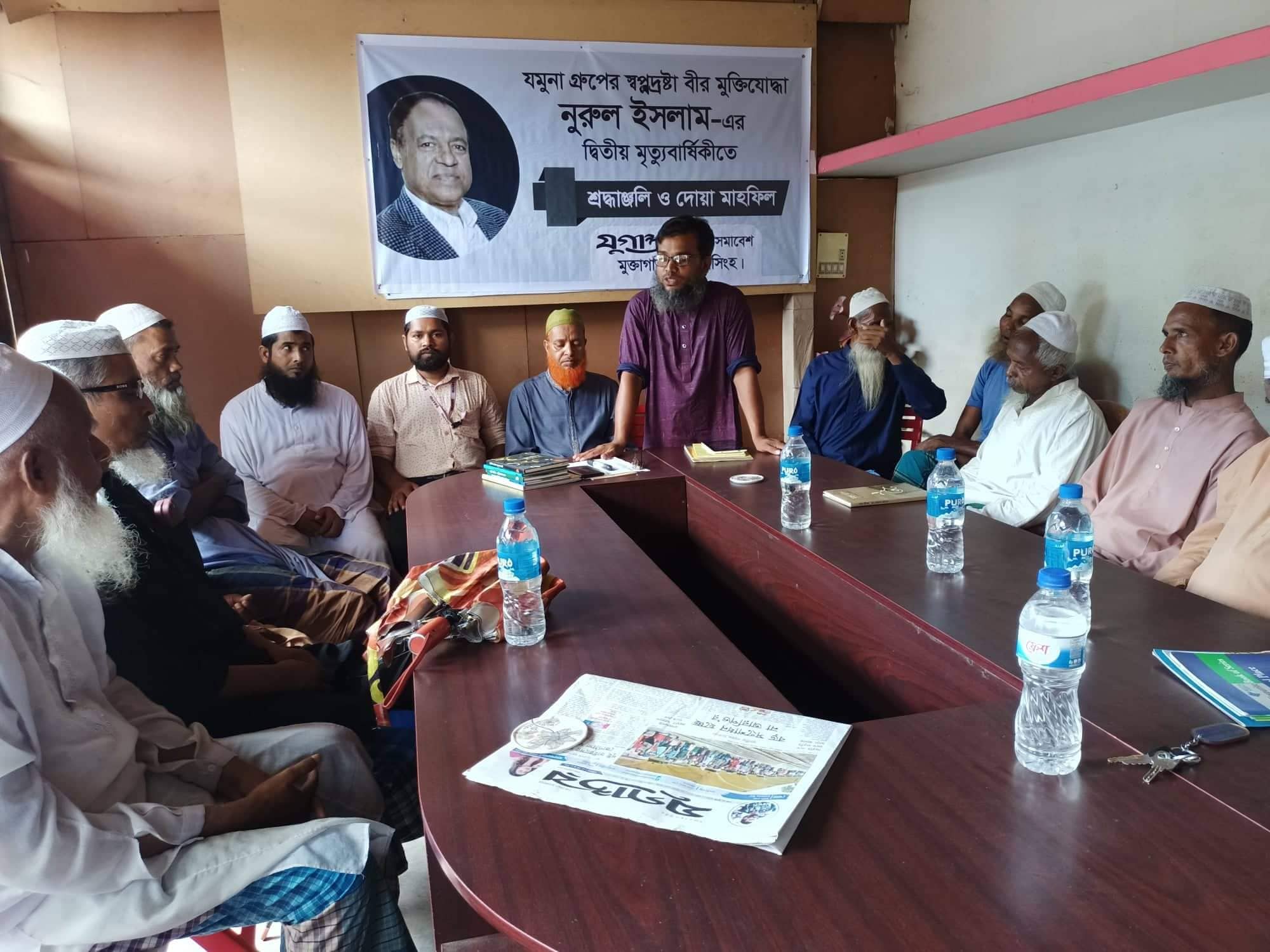 ময়মনসিংহের মুক্তাগাছায় স্বজন সমাবেশের উদ্যোগে যমুনা গ্রুপের স্বপ্নদ্রষ্টা, বীর মুক্তিযোদ্ধা নুরুল ইসলামের দ্বিতীয় মৃত্যুবার্ষিকী উপলক্ষে দিনব্যাপী কর্মসূচি হাতে নেওয়া হয়েছে। এ দিনটি উপলক্ষে শনিবার সকালে উপজেলার ভাবকীর মোড় স্বজন সমাবেশ কার্যালয়ে যমুনা গ্রুপের স্বপ্নদ্রষ্টা বীর মুক্তিযোদ্ধা নুরুল ইসলাম- এর দ্বিতীয় মৃত্যুবার্ষিকিতে দিনব্যাপী কর্মসূচির অংশ হিসাবে সকালে ভাবকীর মোড় স্বজন সমাবেশ কার্যালয়ে স্বজন সভাপতি সাইফুজ্জামান দুদুর সভাপতিত্বে "শিশু কিশোর পাঠ চক্র" এর শিশু কিশোরদের সাথে নুরুল ইসলাম বাবুলের জীবনদশা প্রসঙ্গে আলোচনা ও স্মরণসভার আয়োজন করা হয়। স্মরণসভায় শিশু কিশোরদের মাঝে বীর মুক্তিযোদ্ধা নুরুল ইসলামের কর্মময় জীবনের ওপর আলোচনা করা হয়। স্মরণসভায় বক্তারা বলেন শিল্প খাতের মহানায়ক ছিলেন যমুনা গ্রুপের প্রতিষ্ঠাতা চেয়ারম্যান বীর মুক্তিযোদ্ধা নুরুল ইসলাম বাবুল। সবাইকে শোকের সাগরে ভাসিয়ে ২০২০ সালের এই দিনে (১৩ জুলাই) চিরবিদায় নেন অর্থনীতির সফল এ আইকন। করোনার সঙ্গে প্রায় এক মাসের যুদ্ধে শেষ পর্যন্ত হার মানেন সাহসের এ বাতিঘর। ৭৪ বছর বয়সে তিনি স্ত্রী, এক ছেলে ও তিন মেয়েসহ অসংখ্যা গুণগ্রাহী রেখে গেছেন। তার স্ত্রী সাবেক মহিলা ও শিশুবিষয়ক প্রতিমন্ত্রী বর্তমান জাতীয় সংসদের সদস্য (এমপি) অ্যাডভোকেট সালমা ইসলাম। ছেলে শামীম ইসলাম যমুনা গ্রুপের ব্যবস্থাপনা পরিচালক। তিন মেয়ে-সারিয়াত তাসরিন সোনিয়া, মনিকা নাজনীন ইসলাম এবং সুমাইয়া রোজালিন ইসলাম যমুনা গ্রুপের পরিচালক। বক্তারা আরও বলেন, মুক্তিযোদ্ধা নুরুল ইসলাম বঙ্গবন্ধুর ডাকে স্বাধীনতার সংগ্রামে যুদ্ধ করে দেশ স্বাধীন করেন। পরবর্তীতে তিনি দেশ ও জাতির উন্নয়নে বেকার সমস্যা সমাধানে যমুনা গ্রুপ প্রতিষ্ঠা করেন। দেশের শিল্প উন্নয়নে তিনি যে অবদান রেখেছেন জাতি কখনো তা ভুলবে না। তিনি যেমন ছিলেন স্বাধীনতা যুদ্ধের বীর সেনা তেমনি দেশের উন্নয়নে একজন প্রথমসারির শিল্প উদ্যোক্তা ও সমাজ সেবক। তার রেখে যাওয়া যমুনা গ্রুপ এ দেশে শিল্প কারখানা গড়ে তোলায় জাতির উন্নয়নে অবদান রেখে গেছেন। তার হাতে গড়া যুগান্তর নির্ভীক সাংবাদিকতা বিকাশে অগ্রণী ভূমিকা পালন করে আসছে। তিনি হাজারও কর্মজীবী মানুষের মাঝে অনন্তকাল বেঁচে থাকবেন। স্মরণসভায় বক্তব্য রাখেন, স্বজন সমাবেশ সভাপতি সাইফুজ্জামান দুদু, যুগান্তর মুক্তাগাছা প্রতিনিধি ও স্বজন উপদেষ্টা মোঃ সোহেল রানা, মানবকন্ঠের উপজেলা প্রতিনিধি মনিরুজ্জামান আকাশ, দৈনিক আলোকিত সকালের স্টাফ রিপোর্টার কবি ও সাংবাদিক সাদেকুল ইসলাম সহ সমাজের বিভিন্ন পর্যায়ের গন্যমান ব্যক্তিবর্গ। আলোচনা শেষে শিশু কিশোরদের মাঝে বিভিন্