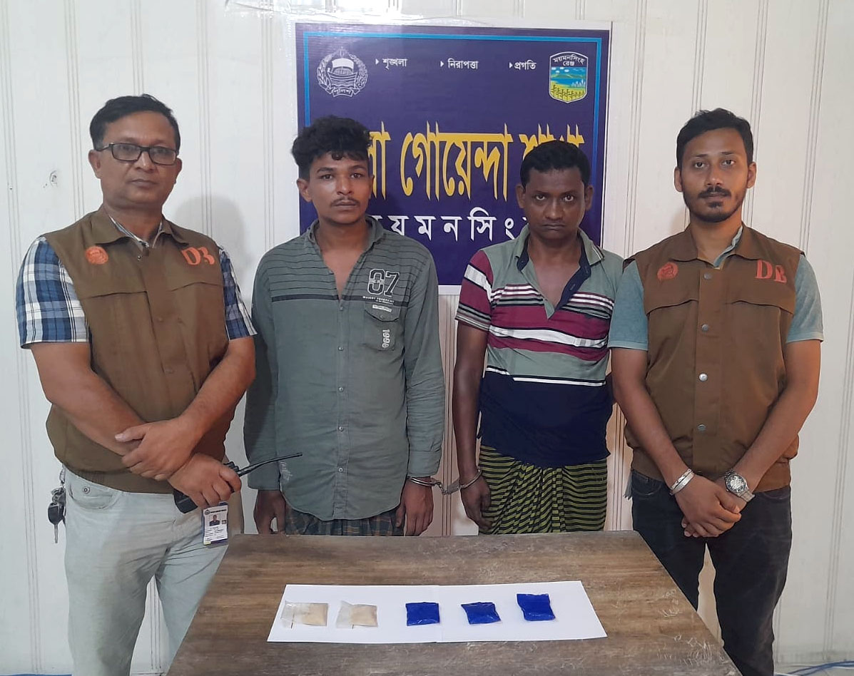 জেলা গোয়েন্দা শাখা, ময়মনসিংহ এর পৃথক ২টি অভিযানে ৫০০ পিস ইয়াবা ট্যাবলেট এবং ২০ গ্রাম হেরোইনসহ ০২ জনকে গ্রেফতার করেছে।