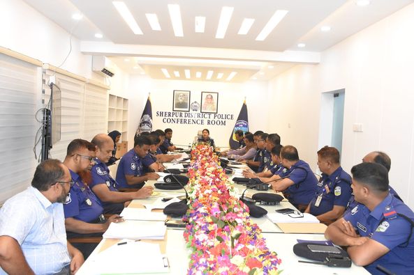শেরপুর জেলা পুলিশ সুপার মোনালিসা বেগম পিপিএম-সেবা নবাগত পুলিশ সুপার এর সভাপতিত্বে তাঁর কার্যালয়ের সম্মেলন কক্ষে জুলাই/২০২৩ খ্রিঃ মাসের মাসিক আইন-শৃঙ্খলা ও অপরাধ পর্যালোচনা সভা অনুষ্ঠিত হয়েছে।