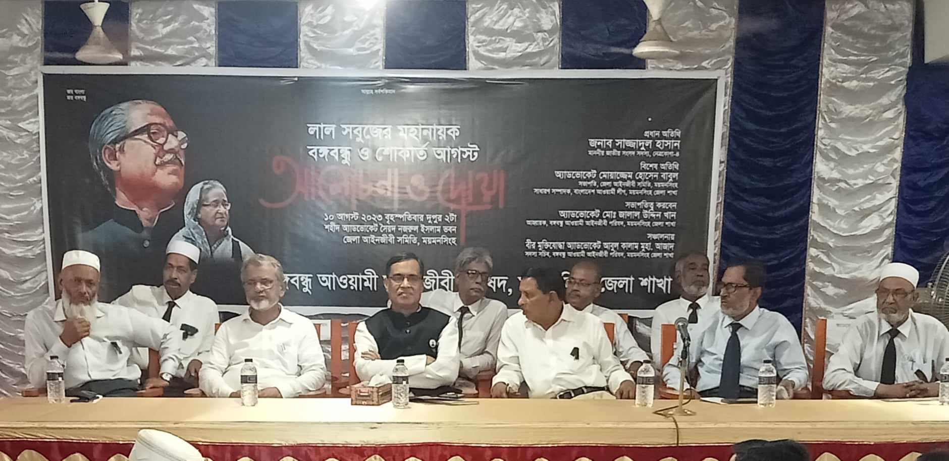 লাল সবুজের মহানায়ক বঙ্গবন্ধু ও শোকার্ত আগস্ট উদযাপন উপলক্ষে বঙ্গবন্ধু আওয়ামী আইনজীবি পরিষদ ময়মনসিংহের আয়োজনে আলোচনা ও দোয়া অনুষ্ঠিত হয়েছে। বৃহস্পতিবার দুপুরে জেলা আইনজীবি সমিতি মিলনায়তনে এই আলোচনা সভা হয়।