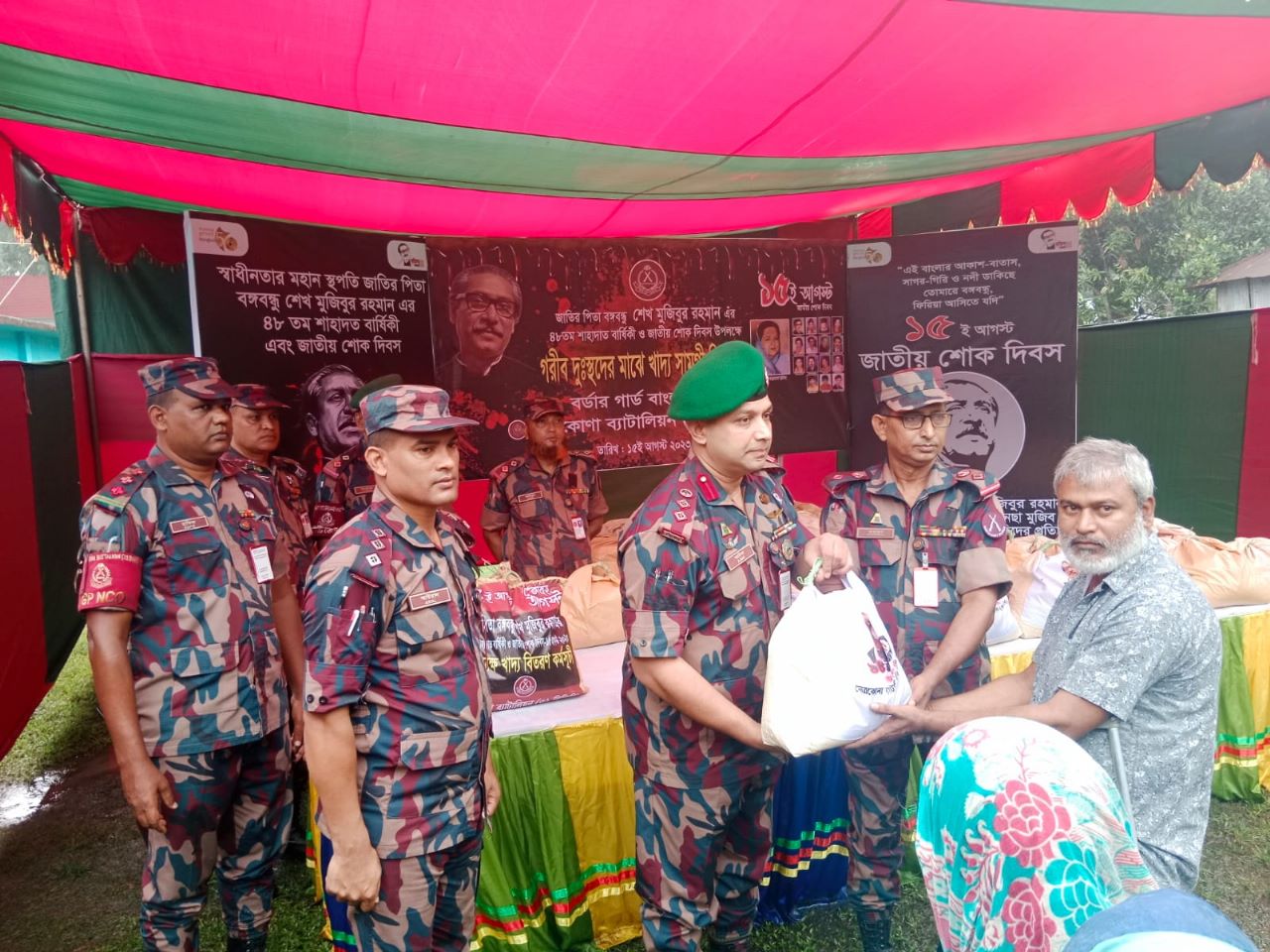 স্বাধীনতার মহান স্থপতি সর্বকালের সর্বশ্রেষ্ঠ বাঙালি জাতির পিতা বঙ্গবন্ধু শেখ মুজিবুর রহমান এর ৪৮তম শাহাদাত বার্ষিকী ও জাতীয় শোক দিবস ২০২৩ উপলক্ষে বর্ডার গার্ড বাংলাদেশ (বিজিবি) বিভিন্ন কর্মসূচী পালন করে এবং দেশব্যাপী গরীব ও অসহায়দের মাঝে খাদ্য সামগ্রী বিতরণ ও বিনামূল্যে চিকিৎসা সেবা প্রদান করা হয়।