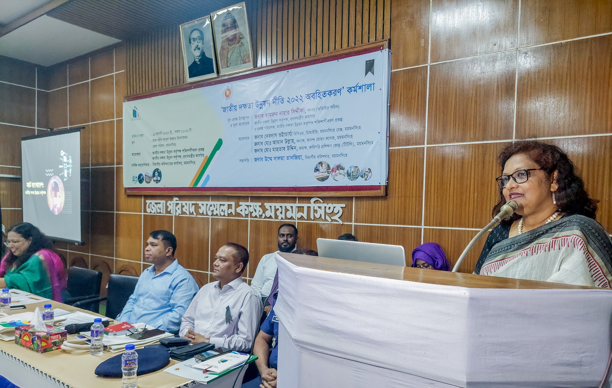 বুধবার জেলা পরিষদ মিলনায়তনে এ কর্মশালার আয়োজন করা হয়। এতে সভাপতি হিসেবে উপস্থিত ছিলেন বিভাগীয় কমিশনার উম্মে সালমা তানজিয়া। বিশেষ অতিথি হিসেবে আনন্দোমহন কলেজের অধ্যক্ষ মোহাম্মদ আমান উল্লাহ, কারিগরি প্রশিক্ষণ কেন্দ্রের অধ্যক্ষ মোঃ মাহতাব উদ্দিন, স্থানীয় সরকার বিভাগের পরিচালক মোঃ ফরিদ উদ্দিন, পুলিশ সুপার ফারুক আহমেদ উপস্থিত ছিলেন। কর্মশালায় ময়মনসিংহ বিভাগের চারটি জেলার দক্ষতা উন্নয়ন সংক্রান্ত বিভাগগুলোর শতাধিক কর্মকর্তা অংশ গ্রহণ করেন।