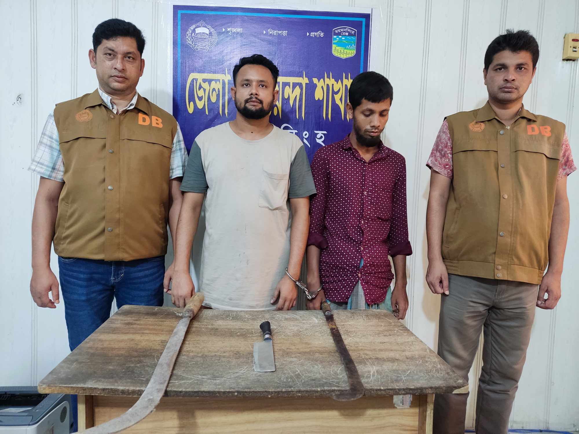 ময়মনসিংহ জেলা গোয়েন্দা শাখা, এর বিশেষ অভিযানে ০২টি রাম দা ও ০১টি চাপাতিসহ ডাকাতি প্রস্তুতিকালে গ্রেফতার-০২।