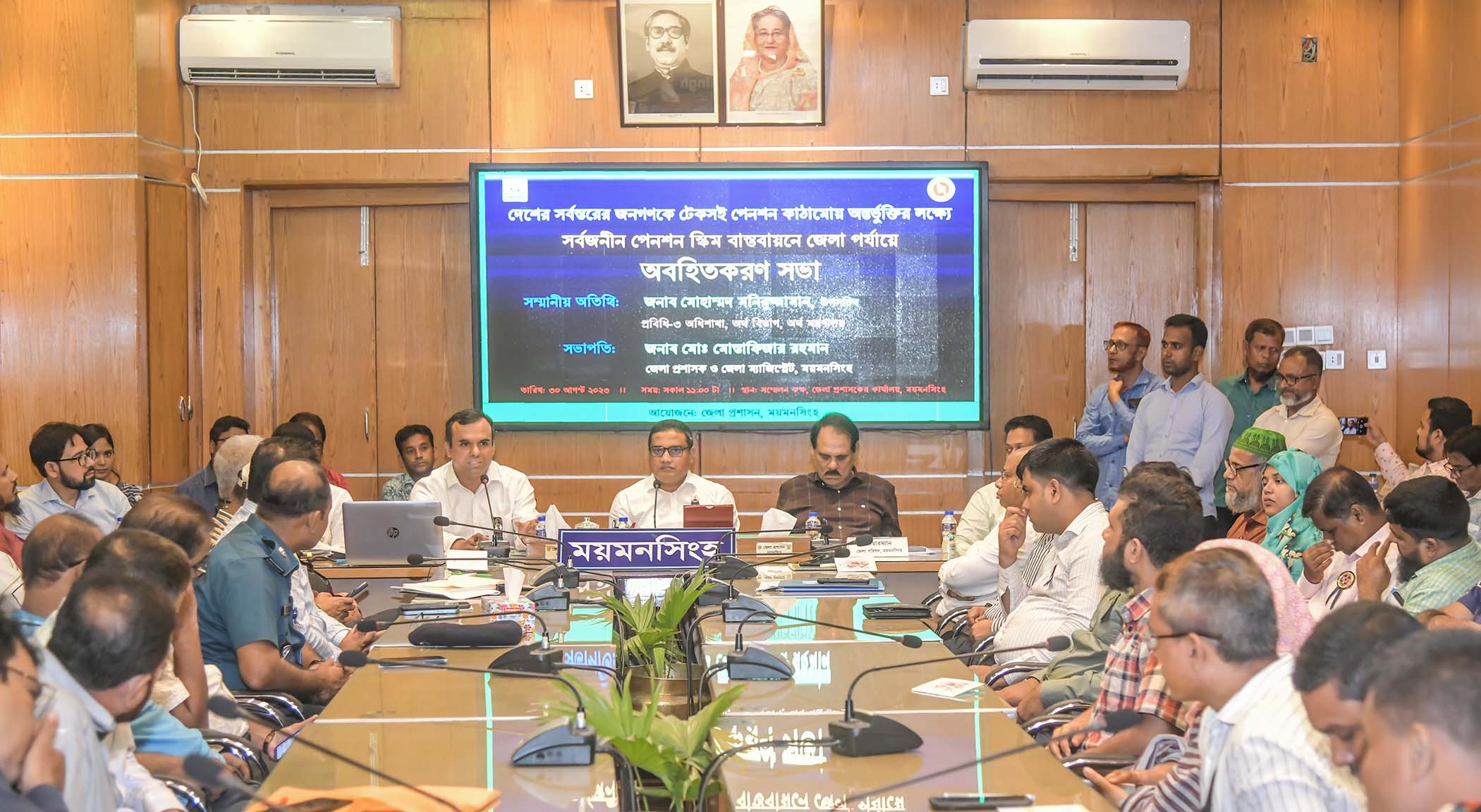 দেশের সর্বস্তরের জনগণকে টেকসই পেনশন কাঠামোয় অন্তর্ভুক্তির লক্ষ্যে সর্বজনীন পেনশন স্কিমের কার্যকর বাস্তবায়ন ও বহুল প্রচারের উদ্দেশ্য সংশ্লিষ্ট সকলকে একসাথে কাজ করতে হবে। ময়মনসিংহ জেলা প্রশাসকের কার্যালয়ের সম্মেলন কক্ষে বুধবার সার্বজনীন পেনশন স্কিম বাস্তবায়নে জেলা পর্যায়ে অবহিতকরণ' শিরোনামে এক সভায় অর্থ মন্ত্রণালয়ের উপ সচিব মোহাম্মদ মনিরুজ্জামান এ কথা বলেন।