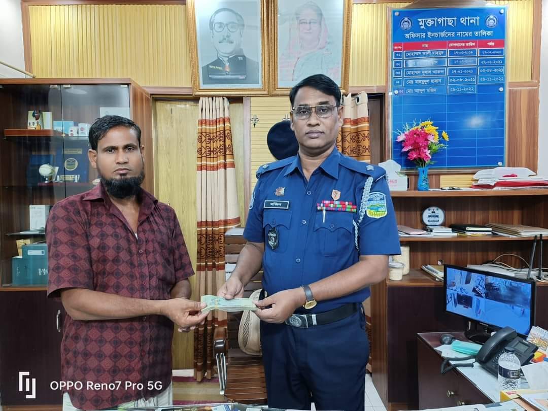 ভূলক্রমে নগদে যাওয়া গ্রাহকের ৩৭ হাজার টাকা উদ্ধার করে দিলেন মুক্তাগাছার ওসি