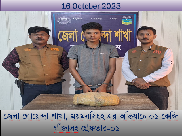 পুলিশ জানায়, এসআই(নিঃ) সুবীর সরকার ও সংগীয় অফিসার ফোর্সসহ অভিযান পরিচালনা করে ময়মনসিংহ জেলার ফুলবাড়ীয়া থানাধীন সন্তোষপুর হানির বাজার সাকিনস্থ জনৈক মোঃ আবু তাহেরের মুদি দোকানের সামনে পাঁকা রাস্তার উপর হইতে ১৬ অক্টোবর ২০২৩ খ্রিঃ তারিখ রাত ০১.০০ ঘটিকার সময় ১ কেজি গাজাসহ উত্তর সন্তোষপুর সীমান্ত বাজার হতে মাদক ব্যবসায়ী মোঃ আশিক (২২)কে গ্রেফতার করেন। গ্রেফতারকৃত আসামি দীর্ঘদিন যাবৎ মাদক কারবারির সাথে জড়িত এবং এই চক্রের সাথে জড়িত অন্যান্যদের সনাক্ত ও গ্রেফতারের অভিযান অব্যাহত আছে।