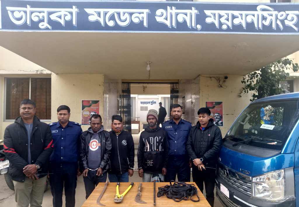 : ময়মনসিংহের ভালুকায় ডাকাতির প্রস্তুতির সময় একটি পিকাপ ভ্যান ও দেশীয় অস্ত্র সহ ৩ ডাকাতকে আটক করেছে পুলিশ। মঙ্গলবার (১৬ডিসেম্বর)রাতে অভিযান চালিয়ে উপজেলার ঢাকা ময়মনসিংহ মহাসড়কের ভালুকার প্রশিকা মোড় থেকে তাদের আটক করা হয়। ভালুকা মডেল থানা অফিসার ইনচার্জ শাহ কামাল আকন্দ জানান, তারা আন্ত জেলা ডাকাত দলের সক্রিয় সদস্য। দীর্ঘদিন যাবত তারা দেশের বিভিন্ন স্থানে ডাকাতি করে আসছিলো। ডাকাতির প্রস্তুতির সময় মকবুল হোসেন, দিপক ও রাজন নামে ৩জনকে আটক করতে পারলেও দৌড়ে পালিয়ে যায় আরও ৭ জন। এসময় তাদের কাছ থেকে ডাকাতিতে ব্যবহৃত একটি নীল রঙের পিকাপ ও দেশীয় অস্ত্র উদ্ধার করা হয়। তাদের বিরুদ্ধে বিভিন্ন থানায় একাধিক মামলা রয়েছে। বুধবার সকালে তাদের আদালতে পাঠিয়েছে পুলিশ।