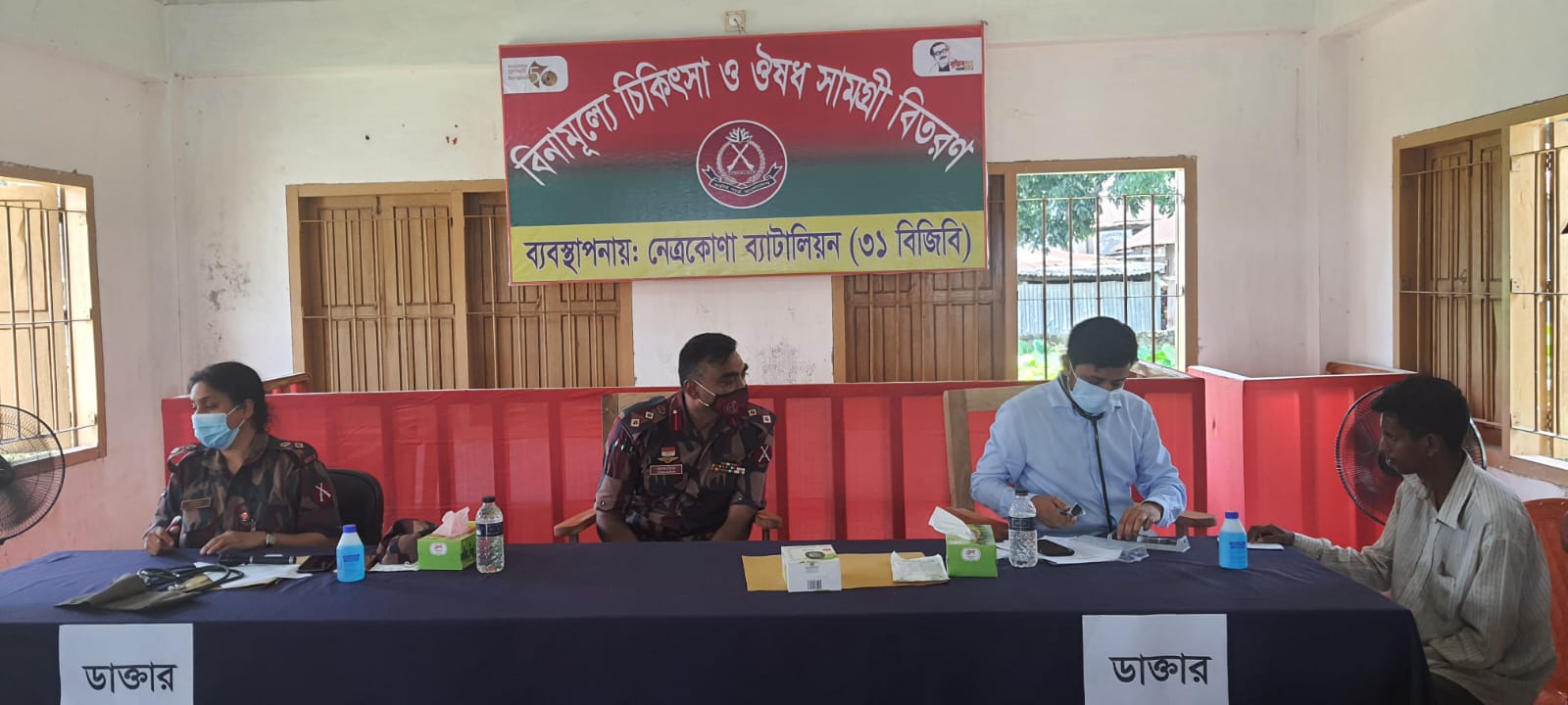 সদর দপ্তর বিজিবি, চিকিৎসা শাখা, ঢাকা এর নির্দেশনার আলোকে আজ ২৬ জুলাই ২০২২ তারিখ ১০’০০ হতে ১৬’০০ ঘটিকা পর্যন্ত ভারপ্রাপ্ত সেক্টর মেডিক্যাল অফিসার, ময়মনসিংহ এর তত্ত্বাবধানে নেত্রকোণা ব্যাটালিয়ন (৩১ বিজিবি) এর সীমান্তবর্তী চারুয়াপাড়া বিজিপির দায়িত্ব এলাকায় ময়মনসিংহ জেলার ধোবাউরা উপজেলার ১নং দক্ষিণ মাইজপাড়া ইউনিয়নের ৭১৫ জন অসহায় দুঃস্থ ও দরিদ্র জনসাধারণের মাঝে মেডিক্যাল ক্যাম্পেইনের মাধ্যমে বিনামূল্যে চিকিৎসা সেবা প্রদান করা হয়। উক্ত ক্যাম্পেইনে অধিনায়ক, নেত্রকোণা ব্যাটালিয়ন (৩১ বিজিবি), মেডিক্যাল অফিসার, স্টাফ অফিসার, স্থানীয় চেয়ারম্যান, মেম্বার ও অন্যান্য গণ্যমান্য ব্যক্তিবর্গের উপস্থিতিতে বিভিন্ন প্রকার ঔষুধ যেমন-গ্র্যাজিথ্ররোমাইসিন, সিরোফ্লক্সাসিন, লোরাটিডিন, প্যারাসিটামল, সেফিকসিম, সেফ্রাডিন, অমিপ্লাজল, ডক্সিসাইলিন এবং ওআরএসসহ সর্বমোট ৬৫ টি গ্রুপের ১৮,৫০০ টি বিভিন্ন প্রকার ট্যাবলেট/ক্যাপসুল/ সিরাপ/ওয়েনমেনট বিতরণ করা হয়।