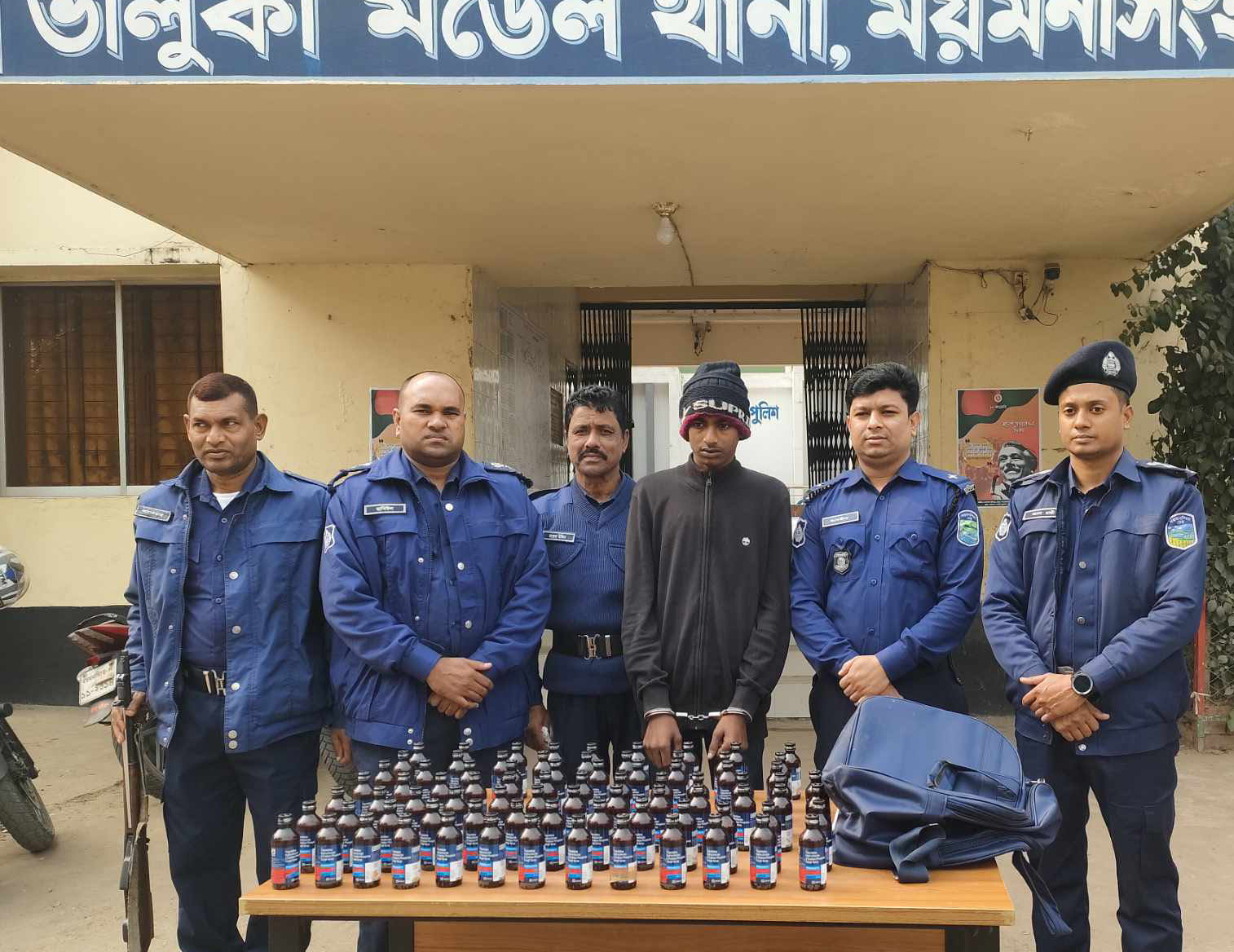 ময়মনসিংহের ভালুকায় ৮০ বোতল ফেন্সিডিলসহ রাব্বি নামে এক যুবককে আটক করেছে পুলিশ। বুধবার রাতে অভিযান চালিয়ে উপজেলার হবিরবাড়ী এলাকা থেকে তাকে আটক করা হয়। ভালুকা মডেল থানার তদন্ত কর্মকর্তা জাহাঙ্গীর আলম জানান, থানার এসআই সামিউল, এসআই খন্দকার আল রাজী, এএসআই তানভীর হাসান সঙ্গীয় ফোর্স পরিচালনা করে হবিরবাড়ী এলাকার মৃত নুরু মিয়ার বাড়ী থেকে ফেন্সিডিল ক্রয় বিক্রয়ের সময় তাকে হাতেনাতে ধরে। এ সময় পালিয়ে যায় ফরহাদ নামে আরো একজন। ফরহাদের বাড়ী শেরপুর জেলার নালিতাবাড়ী থানার পলাশিকুড়া গ্রামে। আটককৃত রাব্বি ময়মনসিংহের ফুলপুর থানার বাহাদুরপুর গ্রামের সাইফুল ইসলামের ছেলে। বৃহস্পতিবার সকালে আটককৃত রাব্বিকে আদালতে পাঠানো হয়েছে।