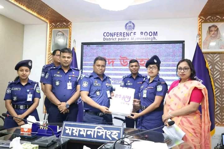 আজ বৃহস্পতিবার (০৪ এপ্রিল ২০২৪) তারিখ সকাল ১১:০০ ঘটিকায় পুলিশ সুপারের কার্যালয়ের কনফারেন্স রুমে পুলিশ হাসপাতালে কর্মরত ১৭ জন পুলিশ সদস্য এবং ৮ জন সিভিল স্টাফকে ময়মনসিংহ জেলা পুলিশ সুপার মাছুম আহাম্মদ ভূঞা এর নিজ হাতে ঈদ উপহার হিসেবে পাঞ্জাবি এবং শাড়ি তুলে দেন।