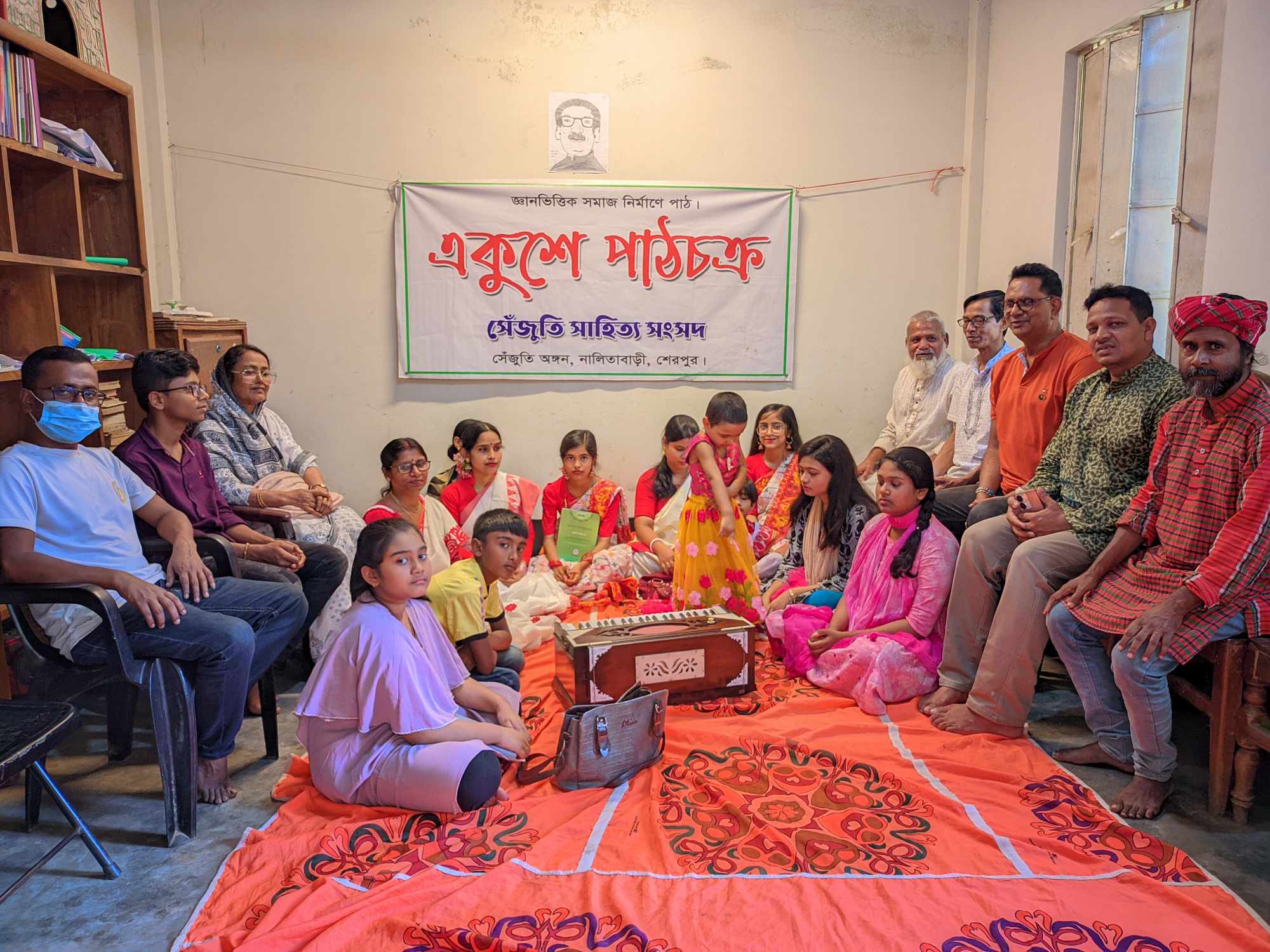 শেরপুরের নালিতাবাড়ী সেঁজুতি অঙ্গনে একুশে পাঠচক্র আয়োজনে বৈঠকী বোশেখ উদযাপন করেছে আড়ম্বরপূর্ণ পরিবেশে। ১৪ এপ্রিল রবিবার সকাল ১০টায় জাতীয় সঙ্গীতের মাধ্যমে জাতীয় পতাকা উত্তোলন করেন শহীদ মুক্তিযোদ্ধা কলেজের প্রভাষক স্বপ্না চক্রবর্তী। পতাকা উত্তোলন শেষে প্রাণের বোশেখ উৎসবে সম্মিলিত কণ্ঠে 'এসো হে বৈশাখ এসো এসো' গানের মধ্যে দিয়ে শুরু হয় বোশেখের বৈঠকী উৎসব।সংস্কৃতিমান মানিক সাহার সঞ্চালনায় বীর মুক্তিযোদ্ধা তোফাজ্জল হোসেনের সভাপতিত্বে বক্তব্য উপস্থাপন করেন কমরেড জাহিদুল ইসলাম জাহিদ,নবরূপী ক্রীড়া ও সাংস্কৃতিক গোষ্ঠীর সভাপতি জয়জিৎ দত্ত শ্যামল,অবসরপ্রাপ্ত শিক্ষক, লেখক,সংস্কৃতিমান মুঞ্জুয়ারা বেগম।গান পরিবেশন করেন মনি গাঙ্গুলি,মোনালি সাহা,মীনাক্ষী সাহা,বৃন্দা সাহা,মিথিল সাহা ও কবিতা আবৃত্তি করেন একুশে দ্যুতি,চন্দ্রিকা দ্যুতি।