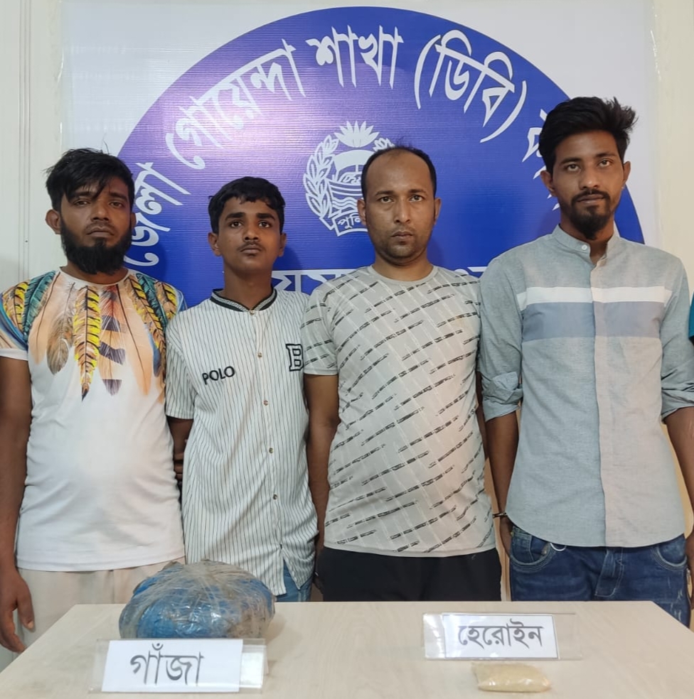 ময়মনসিংহ জেলা গোয়েন্দা সংস্থার পুলিশ শহরের বিভিন্ন স্থানে অভিযান চালিয়ে ৩১ গ্রাম হেরোইন ও ১ কেজি গাজাসহ ৪কে গ্রেফতার করেছে।