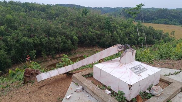 শেরপুরের নালিতাবাড়ী উপজেলার বারমারী সাধু লিওর খ্রিষ্টধর্মপল্লীতে স্থাপিত ফাতেমা রাণীর তীর্থস্থানে বন্যহাতির পাল তান্ডব চালিয়ে ব্যাপক ক্ষয়ক্ষতি করেছে। বন্যহাতি মঙ্গলবার (৭ মে) রাতব্যাপী তান্ডব চালিয়ে ওই ধর্মপল্লীর ক্রুশ ও গুম্বজ ভেঙ্গে গুড়িয়ে দিয়েছে। সুত্রমতে, মঙ্গলবার রাত আনুমানিক ১২ টার দিকে ৪০/৫০ টির একদল বন্যহাতি খাবারের সন্ধানে কাঁটা তারের বেড়া ভেঙ্গে সাধু লিওর খ্রিষ্টধর্মপল্লীতে ঢুকে পড়ে তান্ডব চালাতে থাকে। এসময় ওই ধর্মপল্লীর ফাতেমা রাণীর তীর্থস্থানে খ্রিষ্টভক্তদের ধর্মীয় প্রার্থনা করতে সিঁড়ি পথে স্থাপিত ৪ টি ক্রুশ ও ৩ টি গম্বুজ ভেঙ্গে গুড়িয়ে দেয়। একইসাথে মিশন এলাকার মাদার মেরির মূর্তির চারপাশের গ্রিলের ক্ষতি করেছে। এছাড়া গাছের কাঁঠাল খেয়ে সাবার করেছে বন্যহাতির পাল। রাতে মুহুর্তেই ধর্মপল্লীর ভেতরে বসবাসরতদের মাঝে আতংক ছড়িয়ে পড়ে। তারা গ্রামবাসীদের সহায়তায় মশাল জ্বালিয়ে ডাকচিৎকার করে খরকুটায় আগুন লাগিয়ে প্রতিরোধ গড়ে তোলেন। পরে বন্যহাতির দলটি ভোররাতে মিশন এলাকা ত্যাগ করে। বারমারী সাধু লিও খ্রিষ্টধর্মপল্লীর পালপুরোহিত রেভারেন্ড ফাদার তরুণ বনোয়ারী জানান, বন্যহাতির দল মঙ্গলবার রাতে কাঁটা তারের বেড়া ভেঙ্গে মিশন এলাকায় প্রবেশ করে ৪ টি ক্রুশ ও ৩ টি গম্বুজ ভেঙ্গে গুড়িয়ে দিয়েছে। এতে প্রায় তিন লক্ষাধিক টাকার ক্ষয়ক্ষতি হয়েছে। তিনি আরো বলেন, আমরা সারারাত নির্ঘুম থেকে গ্রামবাসীর সহযোগিতায় বন্যহাতি তাড়িয়েছি। উল্লেখ্য, গত প্রায় ২০ দিন যাবত বন্যহাতির পালটি নালিতাবাড়ী উপজেলার গারো পাহাড়ি বিভিন্ন এলাকায় তান্ডব চালিয়ে কৃষকের বোরো ফসল খেয়ে সাবার করেছে। বসতবাড়িতে হামলা চালিয়ে লন্ডভন্ড করেছে। এমনকি ওই এলাকার বাতকুচি গ্রামের কৃষক উমর আলী কৃষককে শুঁড় দিয়ে পেচিয়ে পিষে হত্যা করেছে। দীর্ঘ দুই যুগ ধরে এভাবে জানমালের ক্ষয়ক্ষতি করলেও হাতির অত্যাচার বন্ধে স্থায়ী কোন পদক্ষেপ গ্রহন করা হচ্ছে না বলে জানান এলাকাবাসী।