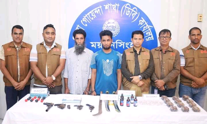 অবৈধ অস্ত্র, বিস্ফোরক ও মাদক বিরোধী বিশেষ অভিযানে ময়মনসিংহ জেলার গোয়েন্দা ডিবি পুলিশের অভিযানে ৪টি আগ্নেয়াস্ত্র,দেশীয় অস্ত্র, নেশাজাতীয় ইনজেকশন এবং বিপুল পরিমাণ বিস্ফোরক'সহ ২ জনকে গ্রেফতার করা হয়েছে।