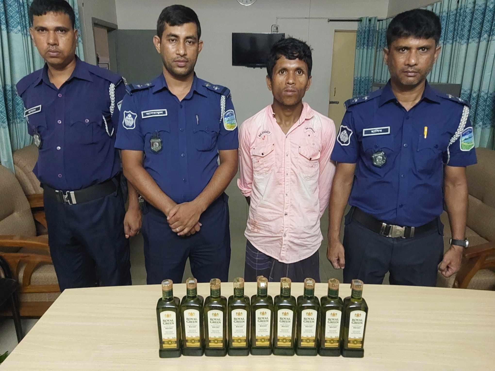 জানা যায়, গোপন সংবাদের ভিত্তিতে উপজেলার আন্ধারুপাড়ার বাইগর পাড়া এলাকা থেকে মাদক বিরোধী অভিযান পরিচালনা করে থানা পুলিশ। এসময় সেই এলাকায় তল্লাশি চালিয়ে ০৯ পিস রয়েল গ্রীণ ব্র্যান্ডের (৩৭৫এমএল) ভারতীয় বোতল সহ হাতেনাতে আনোয়ার'কে গ্রেফতার করা হয়।