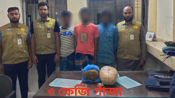কিশোরগঞ্জে ডিবি কর্তৃক ৩ কেজি গাঁজাসহ তিন মাদককারী আটক