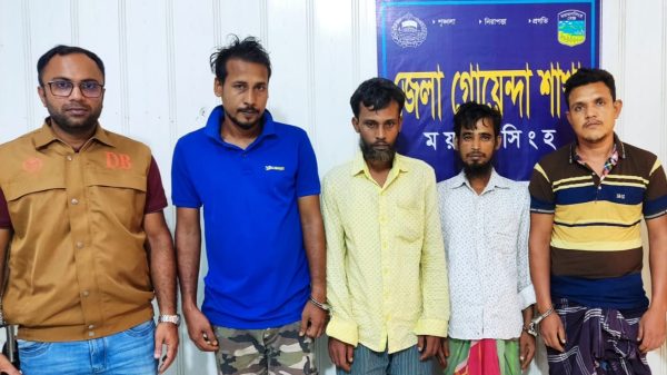 ময়মনসিংহ জেলা গোয়েন্দা পন্থা ডিবির অভিযানে ১০ গ্রাম হেরোইনসহ ৪ জন গ্রেফতার হয়েছে। এসআই(নিঃ) মোঃ ইকবাল হোসেন পিপিএম সংগীয় অফিসার ও ফোর্সসহ অভিযান পরিচালনা করে ময়মনসিংহ জেলার কোতোয়ালী মডেল থানাধীন