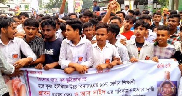 ময়মনসিংহের ফুলবাড়িয়া উপজেলার দেওখোলা বাজারে স্কুলছাত্র সাঈদ হত্যার বিচারের দাবিতে মানববন্ধন হয়েছে। আজ রবিবার সকালে ১০: ৩০মিনিট উপজেলার দেওখোলা বাজারে মানববন্ধন করা হয়। এ সময় কান্নায় ভেঙে পড়েন নিহত স্কুলছাত্রের