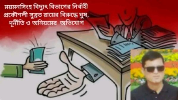 ময়মনসিংহ বিদ্যুৎ বিভাগের নির্বাহী প্রকৌশলী সুব্রত রায়ের বিরুদ্ধে ঘুষ,দূর্নীতি ও অনিয়মের অভিযোগ