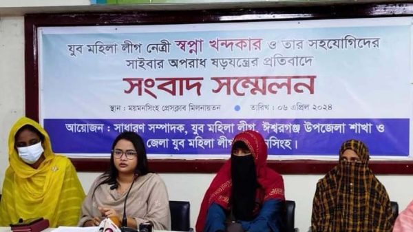 ময়মনসিংহে যুবলীগ নেত্রী স্বপ্না খন্দকারের নামে সাইবার ক্রাইমে মামলা ও সংবাদ সন্মেলন