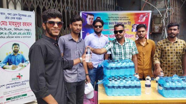 ময়মনসিংহে হিট স্ট্রোক প্রতিরোধে ছাত্রলীগের বিশুদ্ধ পানি বিতরণ