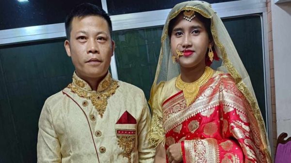 বিয়ের আসরে তাদের পরিচয়। তারপর প্রেম। আর এ প্রেমের টানে চীন থেকে নীলফমারীতে ছুটে এলো প্রেমিক। বিয়েটি সম্পন্ন হয়েছে গত মঙ্গলবার (১৮ জুলাই) নীলফামারীর সৈয়দপুর শহরের একটি কমিউনিটি সেন্টারে। প্রেমিক