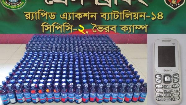 কিশোরগঞ্জের ভৈরব থেকে ৪৪৮ বোতল ফেন্সিডিলসহ ০১ মাদক কারবারিকে আটক করেছে র‌্যাব-১৪